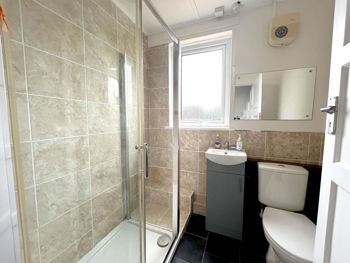 Shower Room - With generous walk-in tiled and glazed shower cubicle with shower with extra drencher head. Wash hand basin set into a vanity unit with storage under, dual flush w.c., attractive slate tiling to the floor with stone effect tiling to the wall. An extractor and a window to the rear aspect.