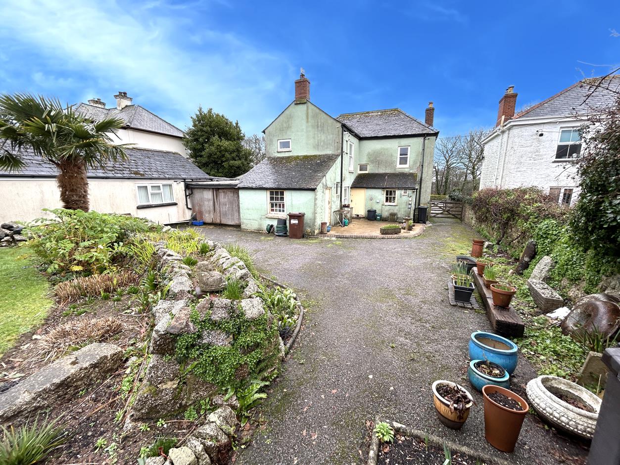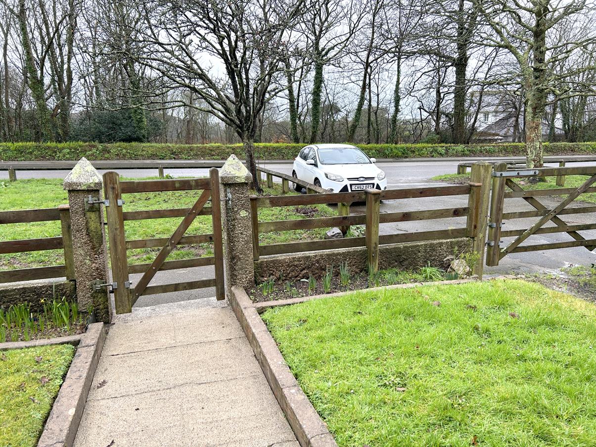 Outside - From the front of the property approached from Meneage Road over an area which is currently owned by the Downsland Charitable Trust that leads to the gated entrance and driveway of the property with parking and leads to a further gate with further parking and turning area at the rear.