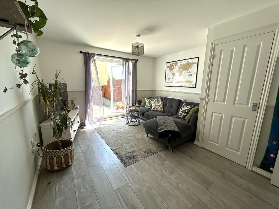 Lounge - 4.4 x 3.7 (max measurments) (14'5" x 12'1" (max me - An airy space with wood effect laminate flooring. Glazed effect French doors lead out on to the rear garden. Useful understairs storage cupboard.