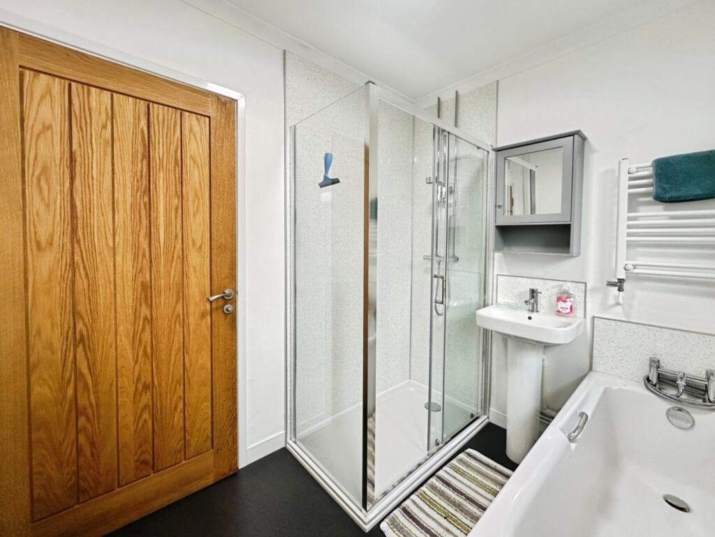 Step into the welcoming entrance hall which provides access to all rooms aswell as built in storage. The spacious living room is light and airy and is enhanced by a log burner creating a warm and cosy atmosphere. The contemporary kitchen provides plenty of storage as well as space for a table and chairs, creating a practical layout for everyday living. There are two well proportioned bedrooms and a sleek modern shower room which enjoys a separate bath and shower ensuring it is future proofed.