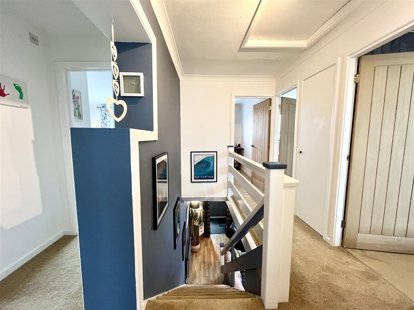 Stairs / Landing - A large landing with airing cupboard, loft hatch with pull down ladder and doors into five bedrooms, family bathroom and shower room. Our client has advised us that the loft is boarded and has light connected.