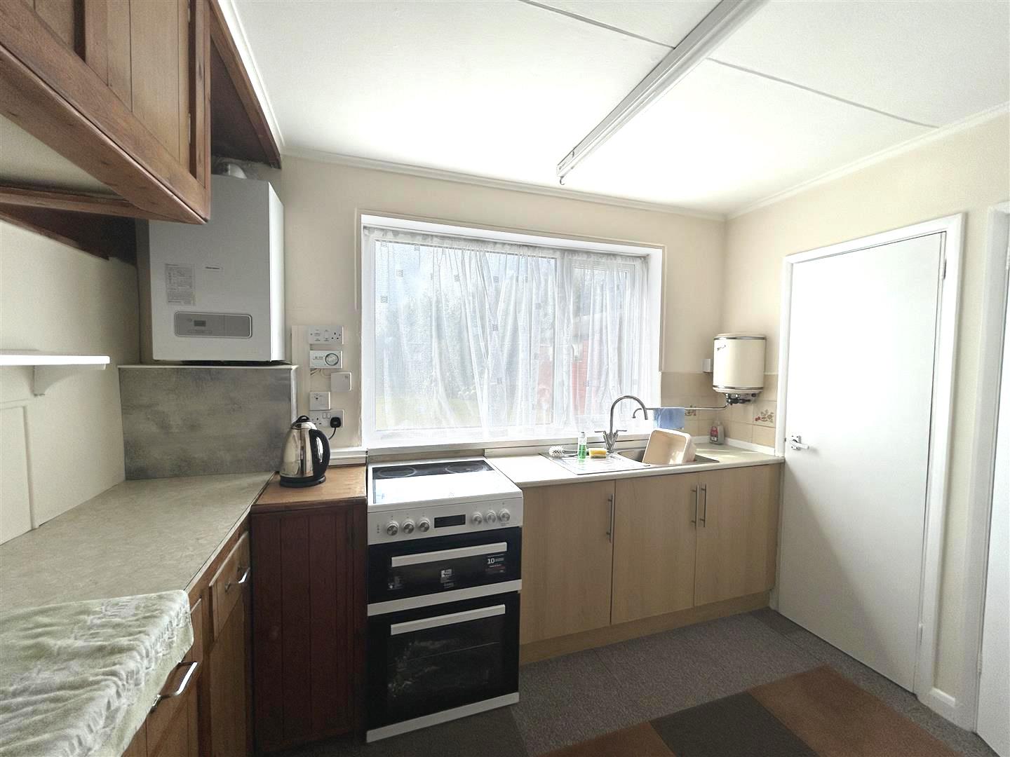 Kitchen - 3.132 x 2.13 (10'3" x 6'11") - A fitted kitchen with worktops that incorporate a stainless steel sink drainer, tiled splashbacks and instant water heater over. The room houses the gas boiler and with a mixture of base and drawer units under, wall units over, a large cupboard with shelves and plumbing for a washing machine. There is a window to the rear aspect overlooking the garden with opening to the dining room.