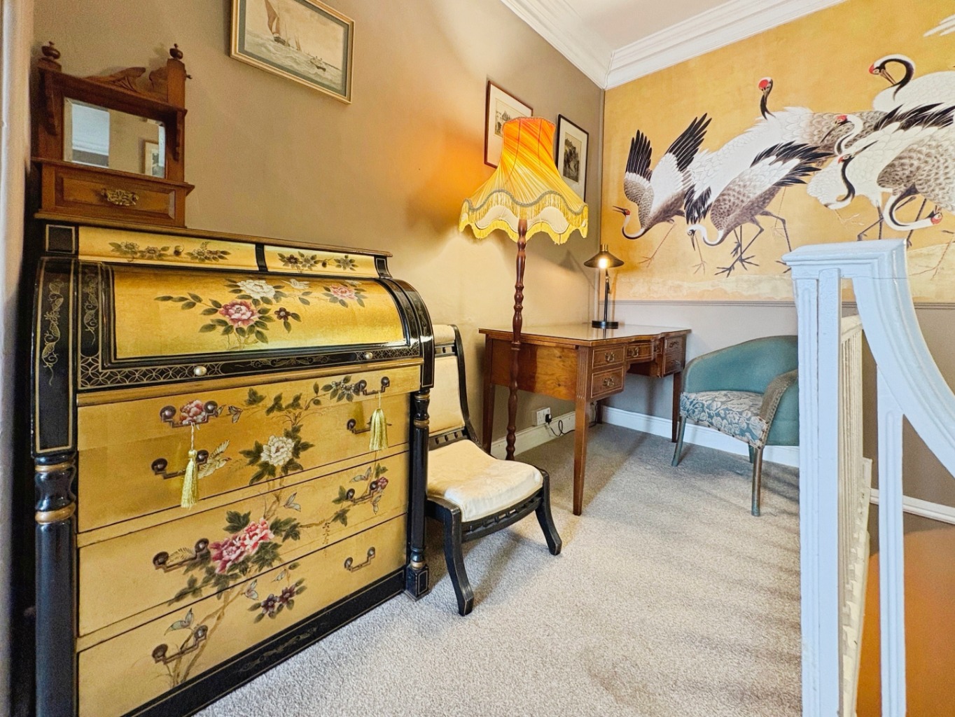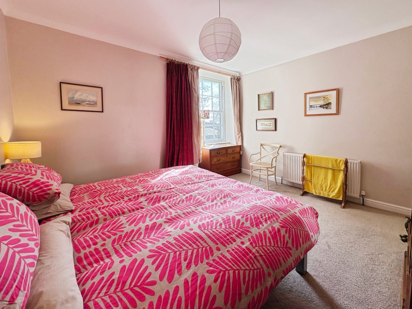 Inside, the flat is warm, spacious and beautifully presented, with high ceilings and large windows that create a bright and airy feel throughout. A welcoming lounge provides a comfortable space for relaxing or entertaining, while the well positioned kitchen serves the home efficiently. Two well proportioned bedrooms offer flexible accommodation for residents or for guests. Additional storage areas throughout the property provide useful space for keeping the home organised and clutter free.