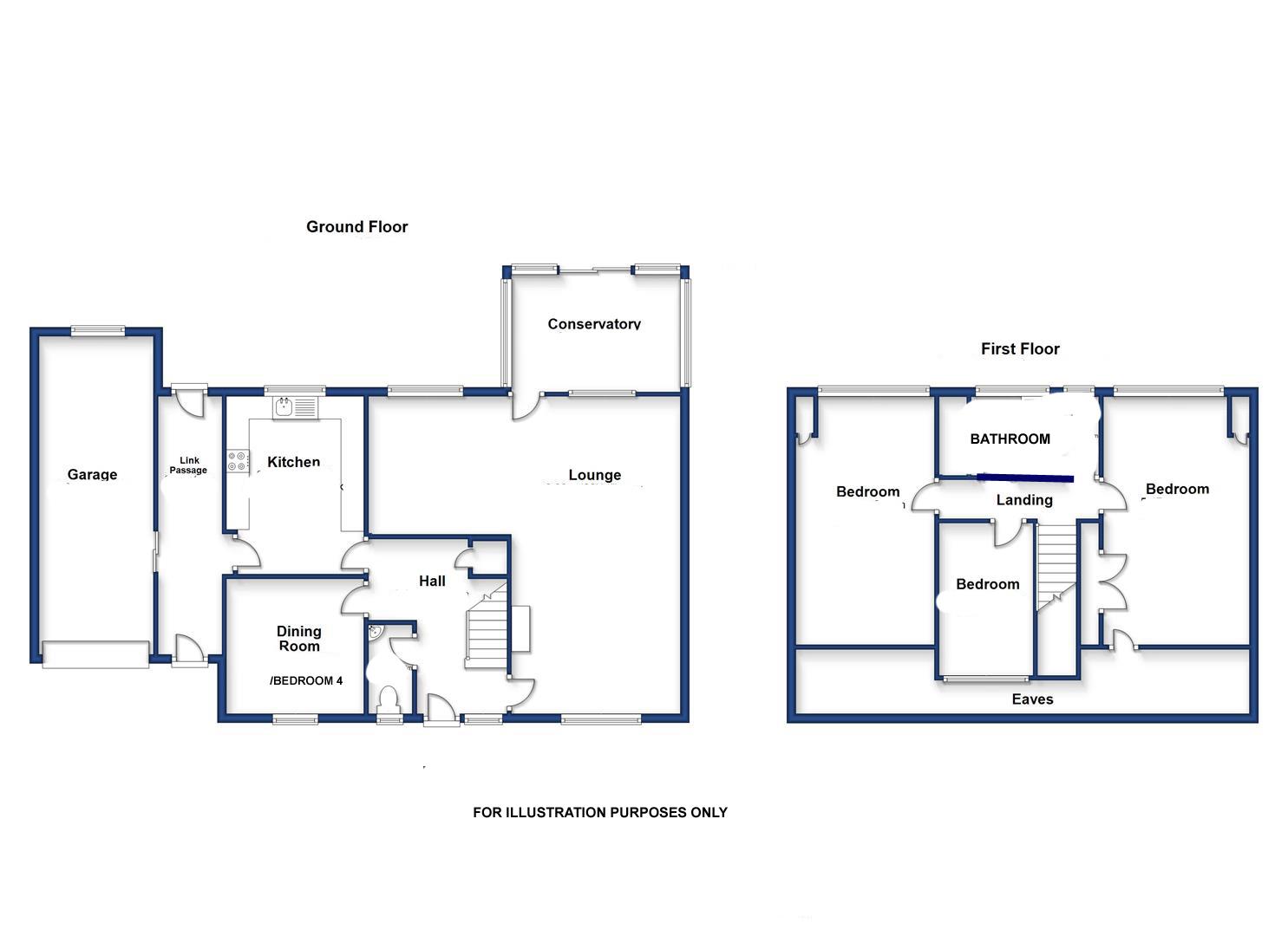 The accommodation briefly comprises an entrance hallway, a generous L-shaped lounge/dining room opening into a conservatory again with delightful rural views, a fitted kitchen, a fourth bedroom, and a cloakroom on the ground floor.