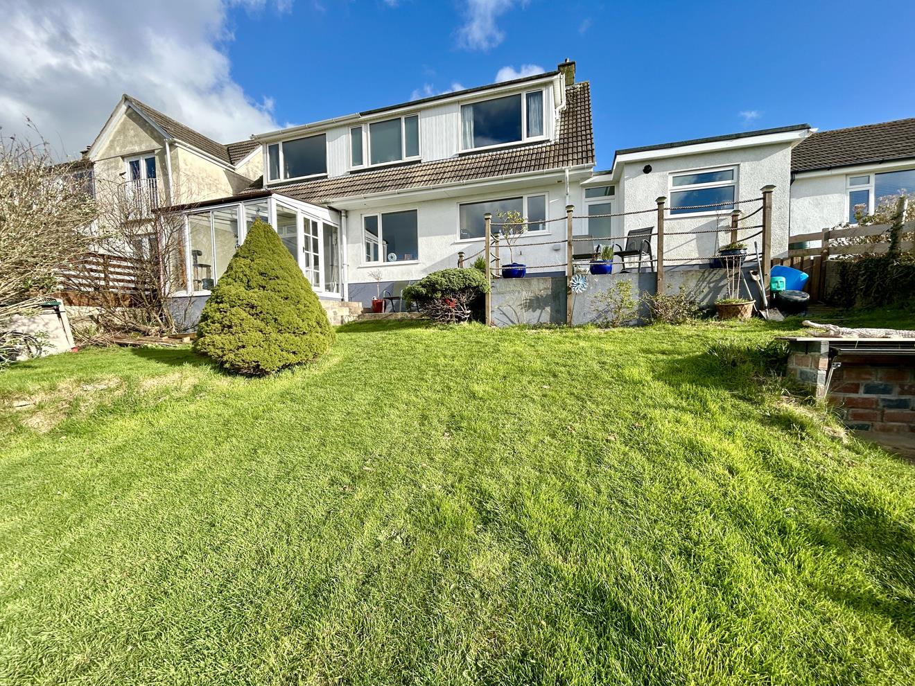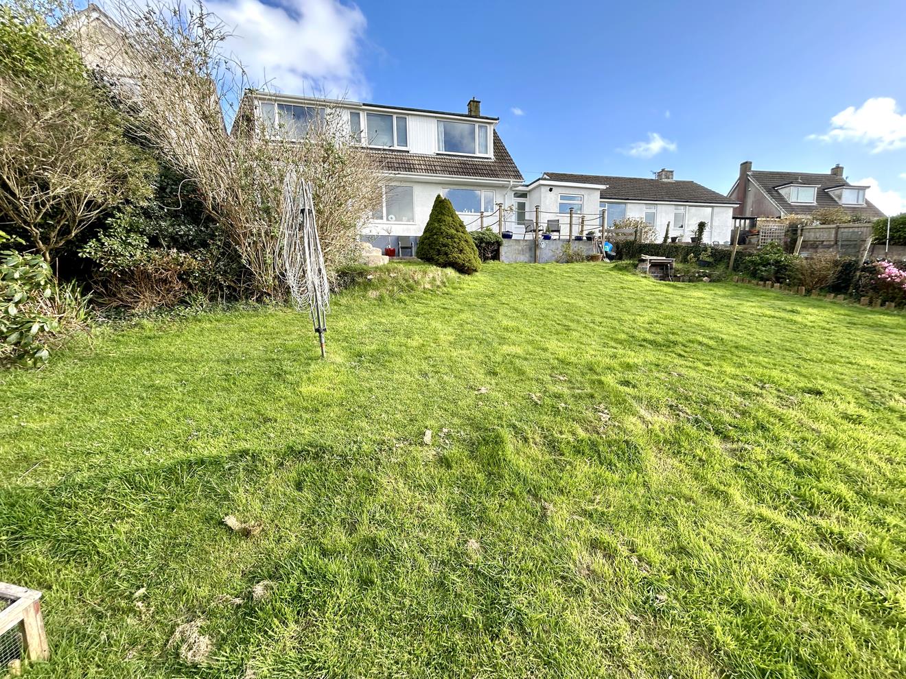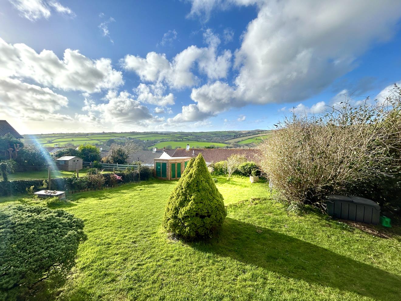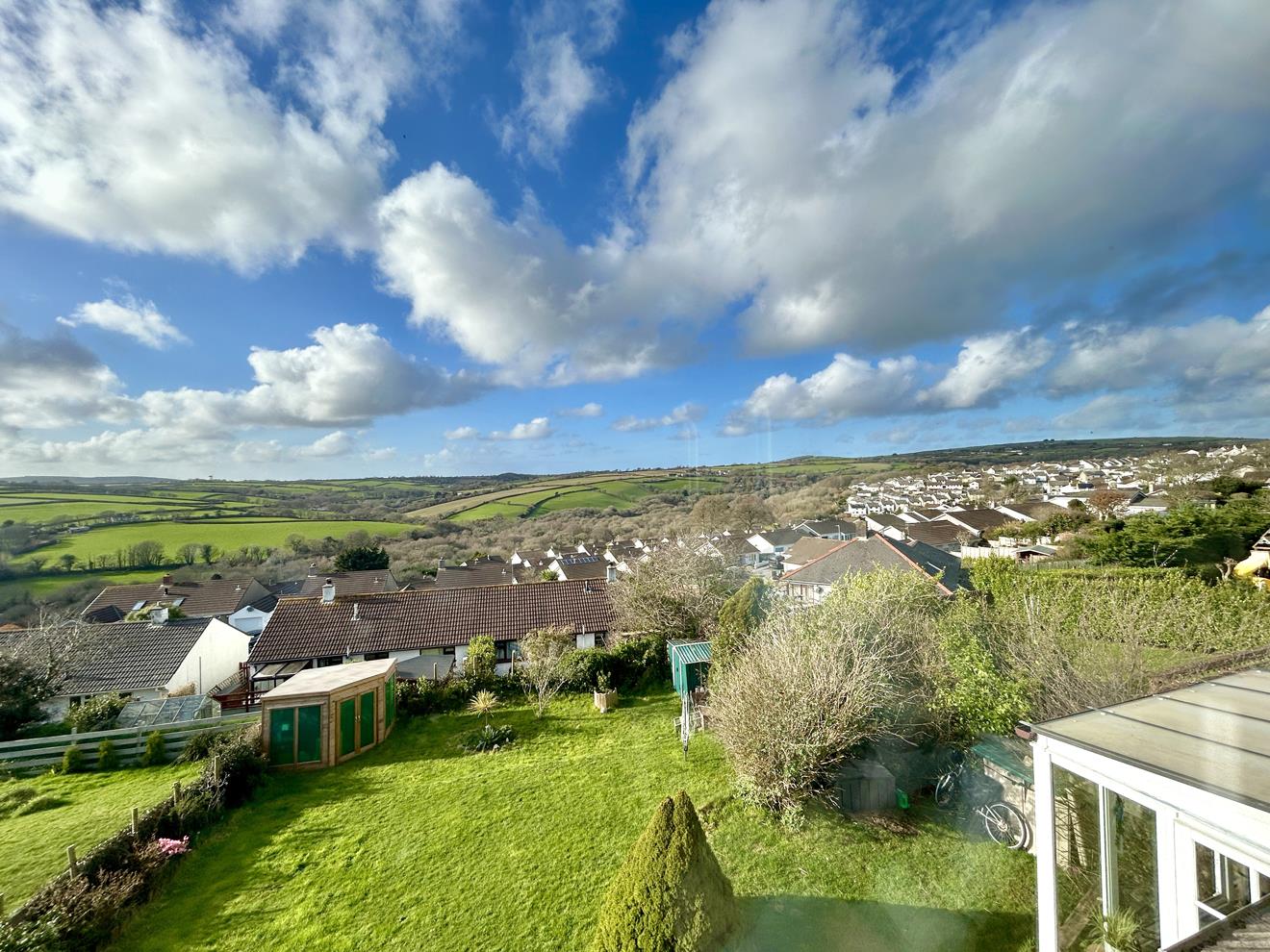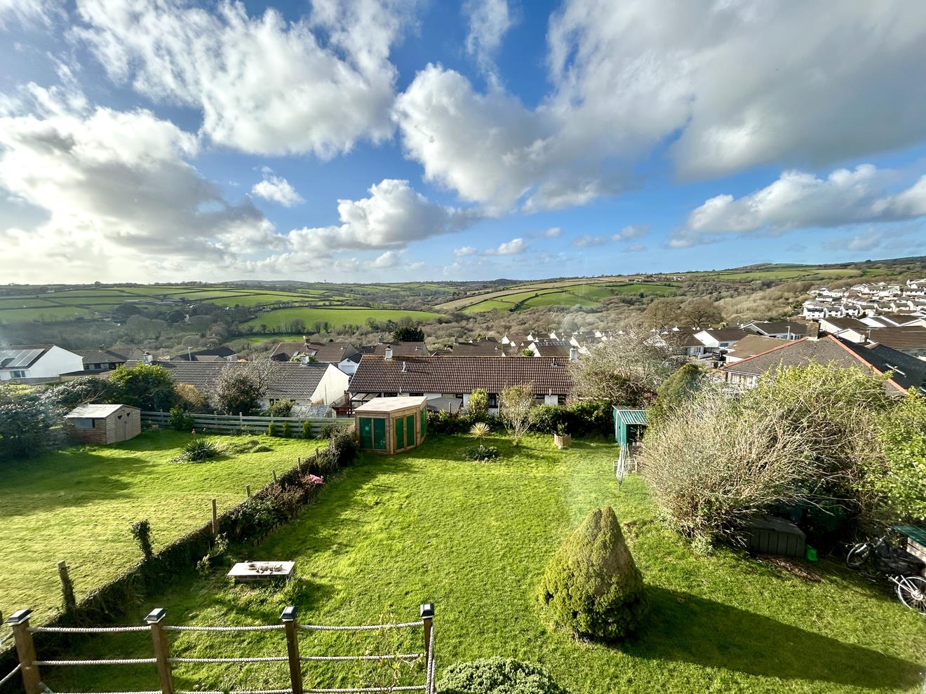 The rear garden is a particularly attractive feature of the home, enjoying stunning rural views across the Cober Valley and surrounding woodland, extending towards open countryside with Tregonning Hill visible in the distance. The garden is mainly laid to lawn with planted borders containing a wide range of mature plants, trees and shrubs.