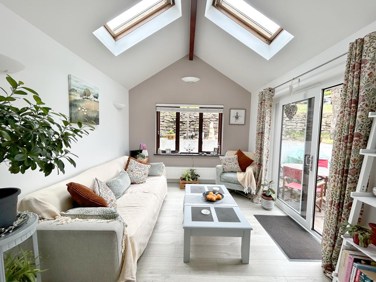 Sun Room - 3.2m x 3.3m (10'5" x 10'9" ) - A lovely airy space with vaulted ceilings incorporating two skylights. Glazed patio doors lead out to on to the rear garden and patio seating area.