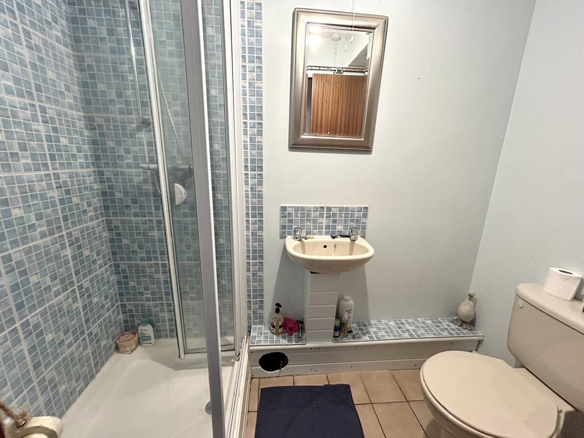 Shower Room - With glazed shower cubicle having tiled splash back, wash handbasin with tiled splash back, close coupled W.C., extractor, tiling to the floor.