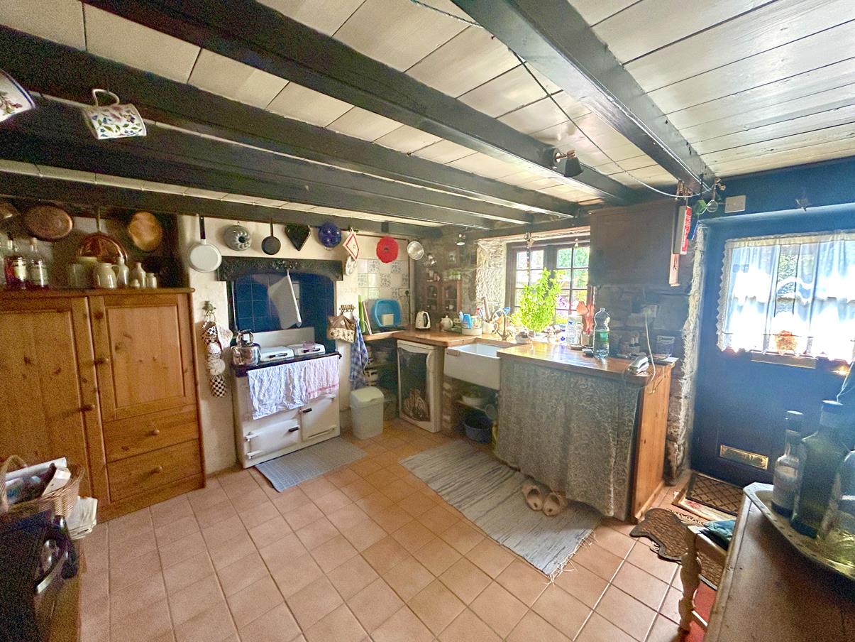 The ground floor comprises a characterful kitchen/diner featuring a Rayburn, alongside a cosy lounge/diner with an impressive stone fireplace.