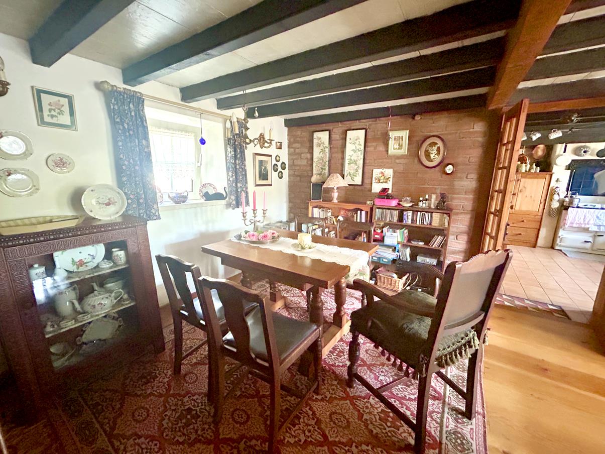 Lounge/Diner - 6.18 x 3.58 (20'3" x 11'8") - A delightful room brimming with character, featuring exposed beamed ceilings and an impressive local stone fireplace housing a wood-burning stove. The space is enhanced by partially exposed stone walls, complemented by further section of exposed red brick.