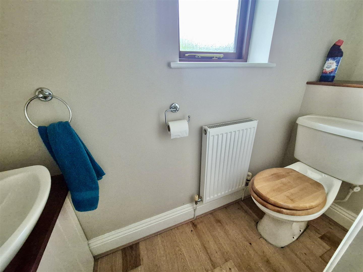 W.C. - Comprising of a close coupled W.C., wall mounted wash basin and frosted window to the front.
