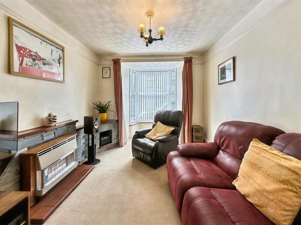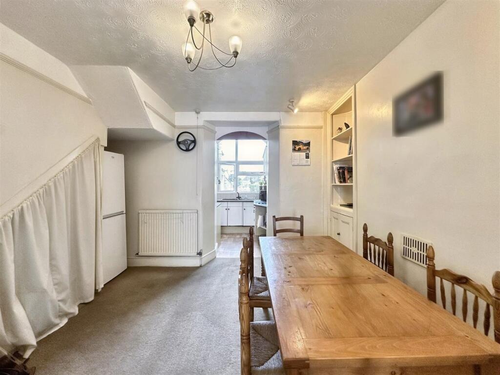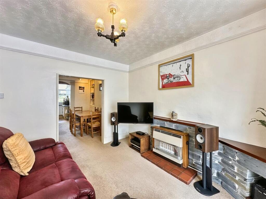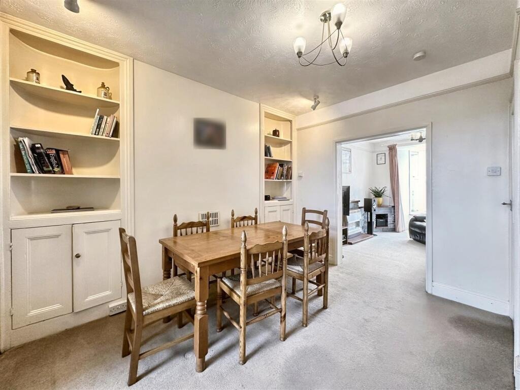 Upstairs, you’ll find two generously sized double bedrooms and a family bathroom. Outside, the enclosed rear garden has been cleverly landscaped for low maintenance and is a real suntrap, ideal for relaxing or entertaining in warmer months. One of the property’s rarest and most valuable assets is the garage, offering secure parking or additional storage space—something seldom found this close to town. This is a home bursting with potential in a truly convenient location.