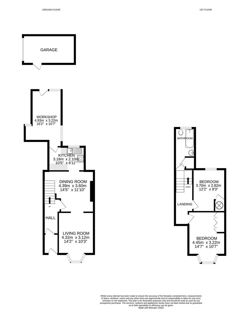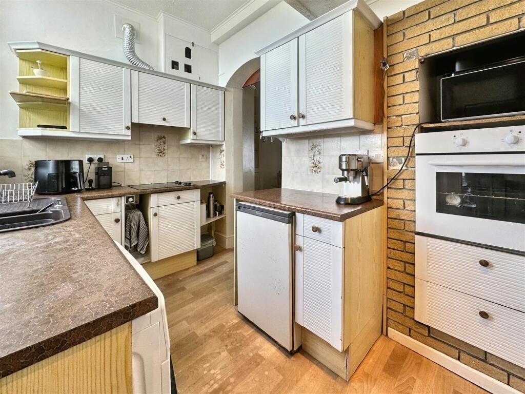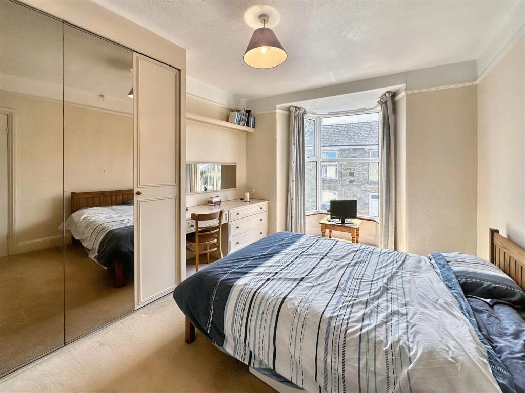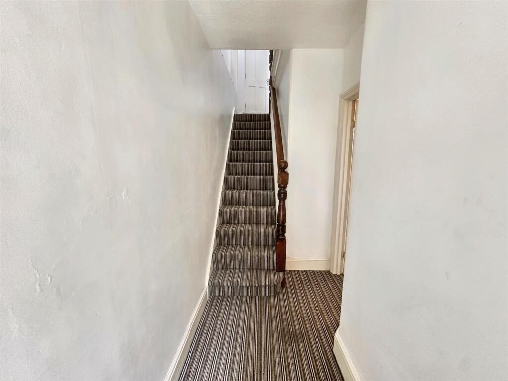 Upstairs, you’ll find two generously sized double bedrooms and a family bathroom. Outside, the enclosed rear garden has been cleverly landscaped for low maintenance and is a real suntrap, ideal for relaxing or entertaining in warmer months. One of the property’s rarest and most valuable assets is the garage, offering secure parking or additional storage space—something seldom found this close to town. This is a home bursting with potential in a truly convenient location.