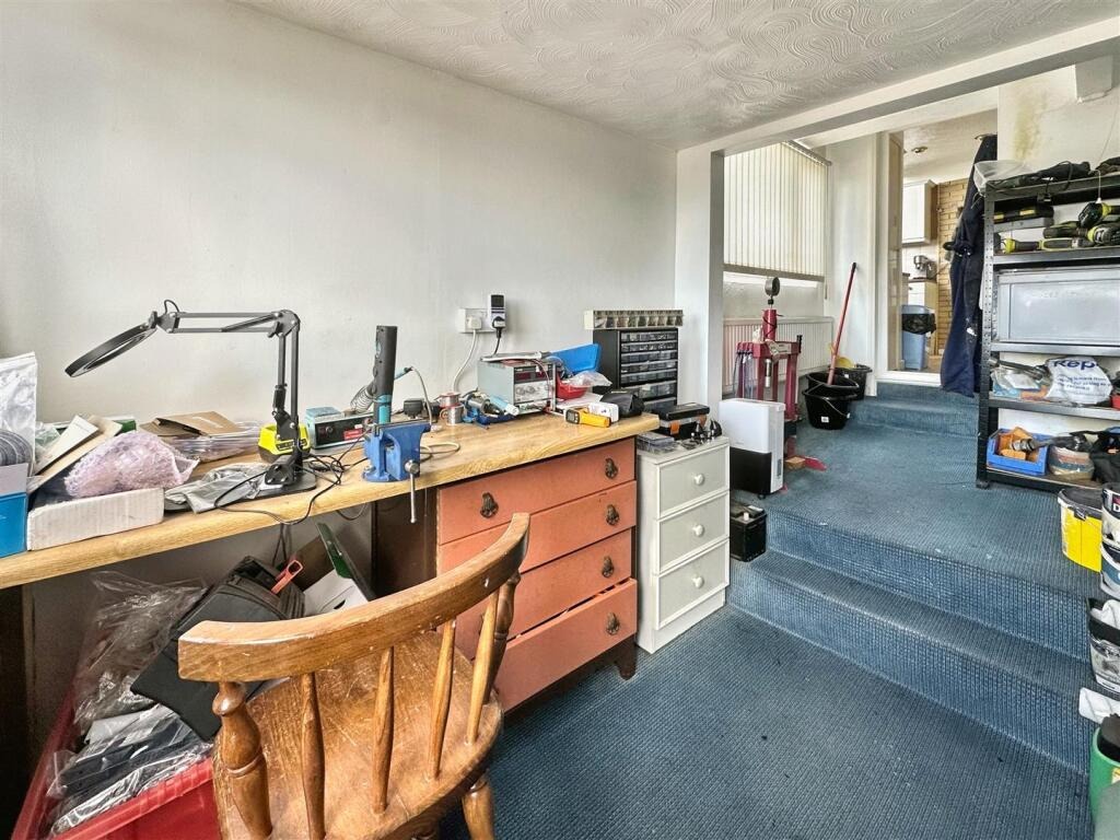 While the property would benefit from some updating, it presents a fantastic opportunity to create a home tailored to your own taste and style. The open plan lounge and dining area offers a sociable living space, ideal for everyday living or entertaining, while the kitchen provides plenty of storage and functionality. A standout feature is the attached workshop, which offers brilliant versatility, perfect for DIY enthusiasts or easily adaptable into a home office for those working remotely.
