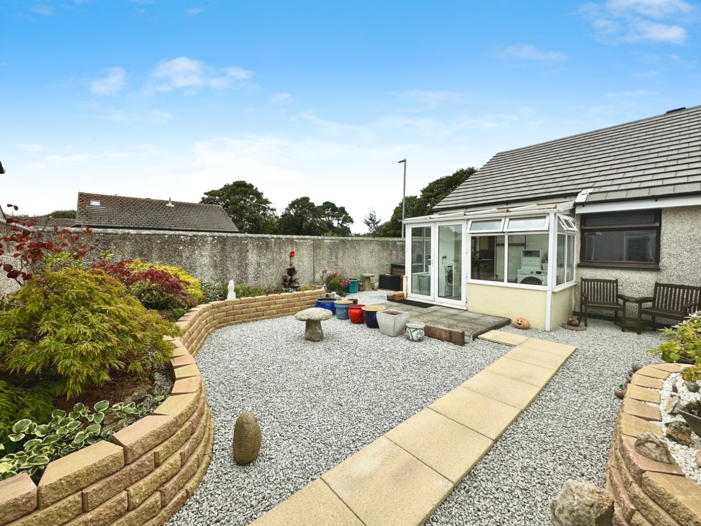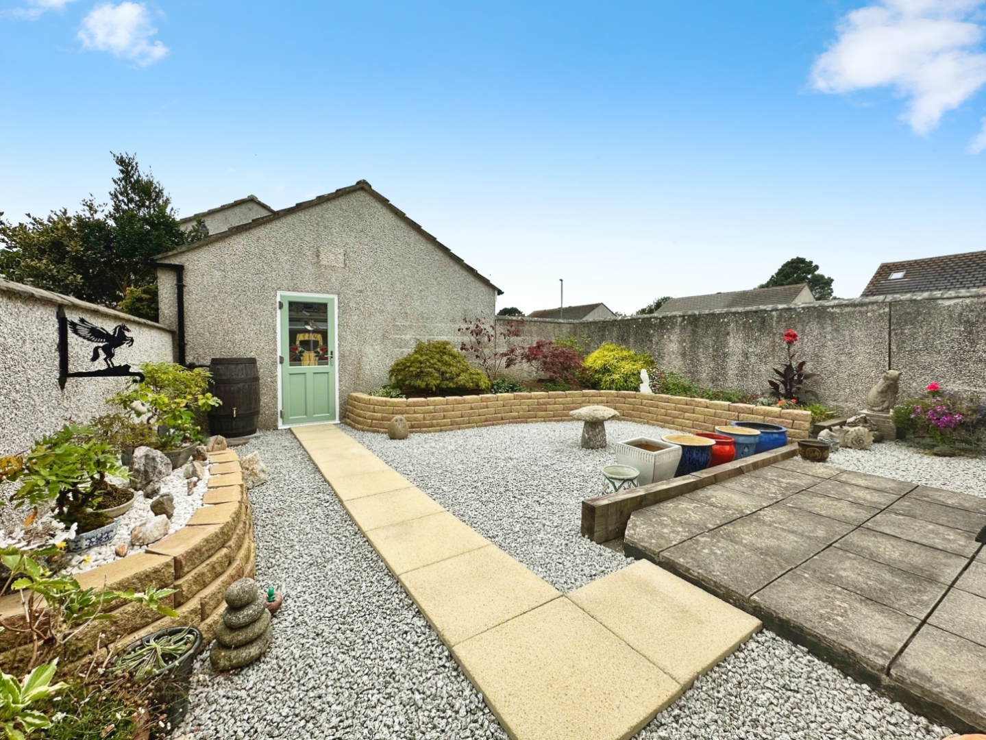 Outside - The rear garden has been beautifully designed with ease of maintenance in mind, featuring gravelled areas, raised flowerbeds, and well established planting that adds colour and interest throughout the seasons. A paved pathway leads to a seating area, perfect for enjoying the sunshine, while the enclosed layout provides both privacy and security.
