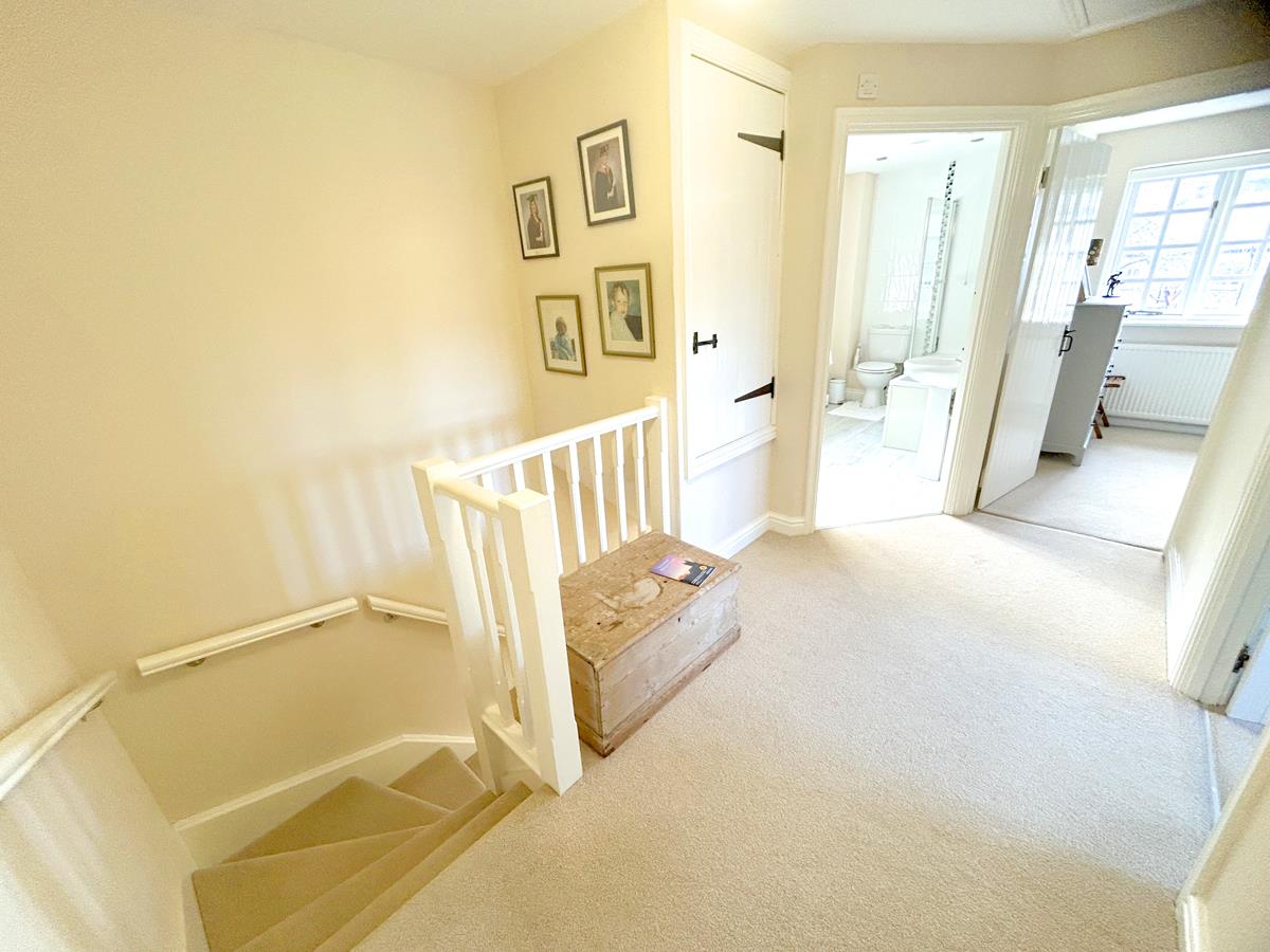 Landing - Of generous proportions with white balustrade, latched door to airing cupboard with shelving, loft hatch to roof space and latched doors to the family bathroom and both bedrooms.