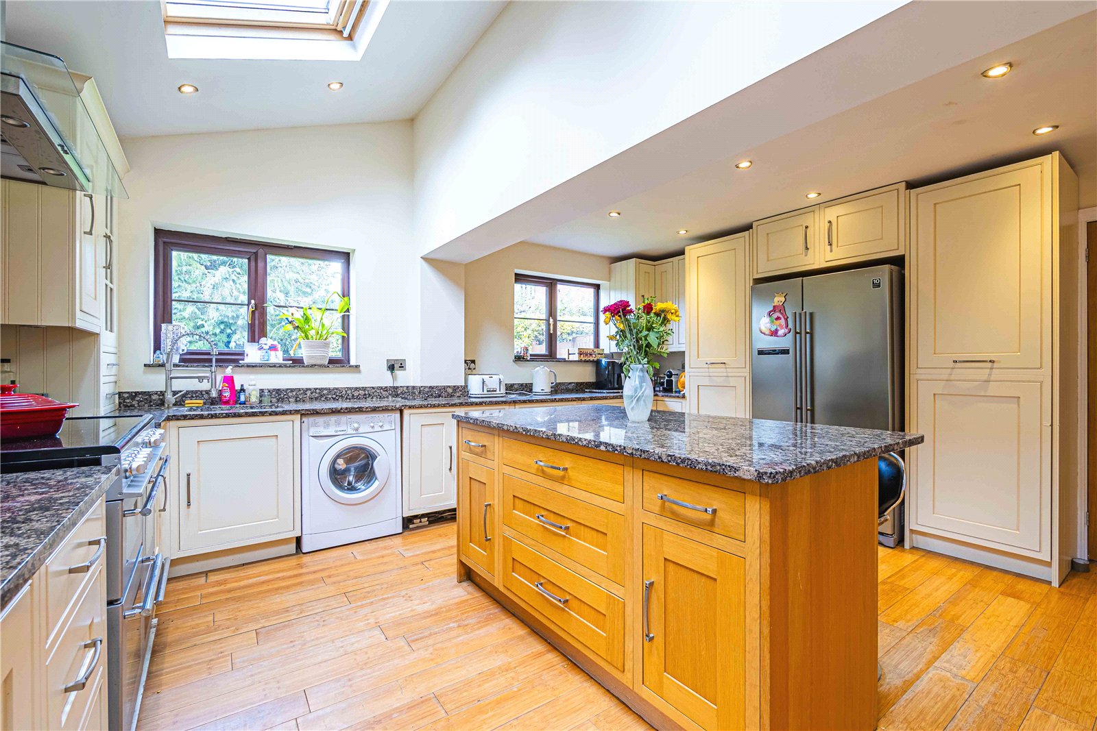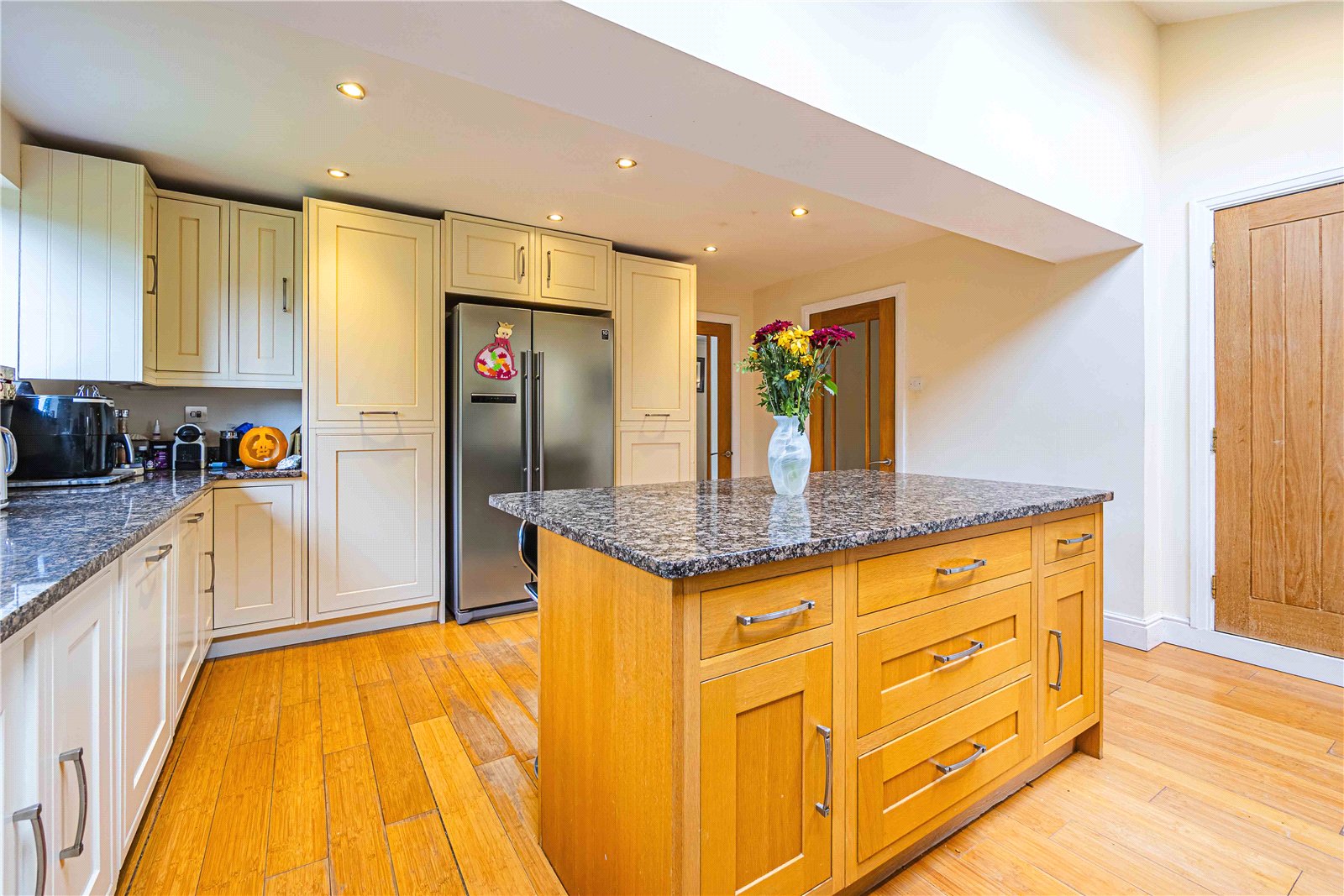 The kitchen is welcoming and offers plenty of space for all modern appliances plus a sizeable breakfast bar which offers extra workspace to the already ample units and cupboards.