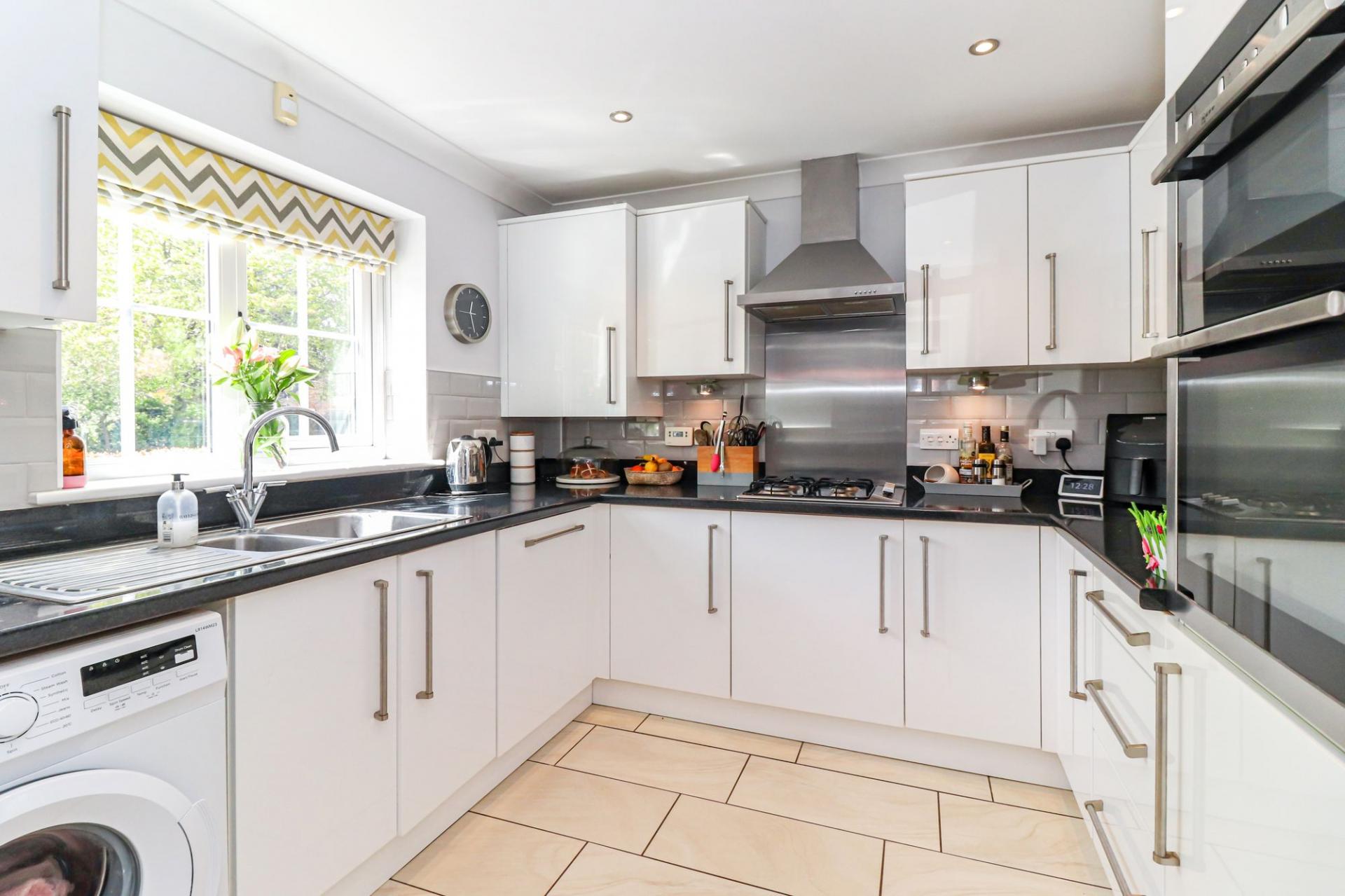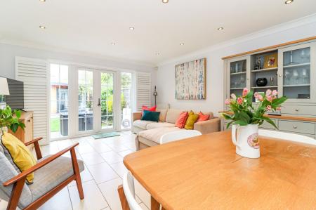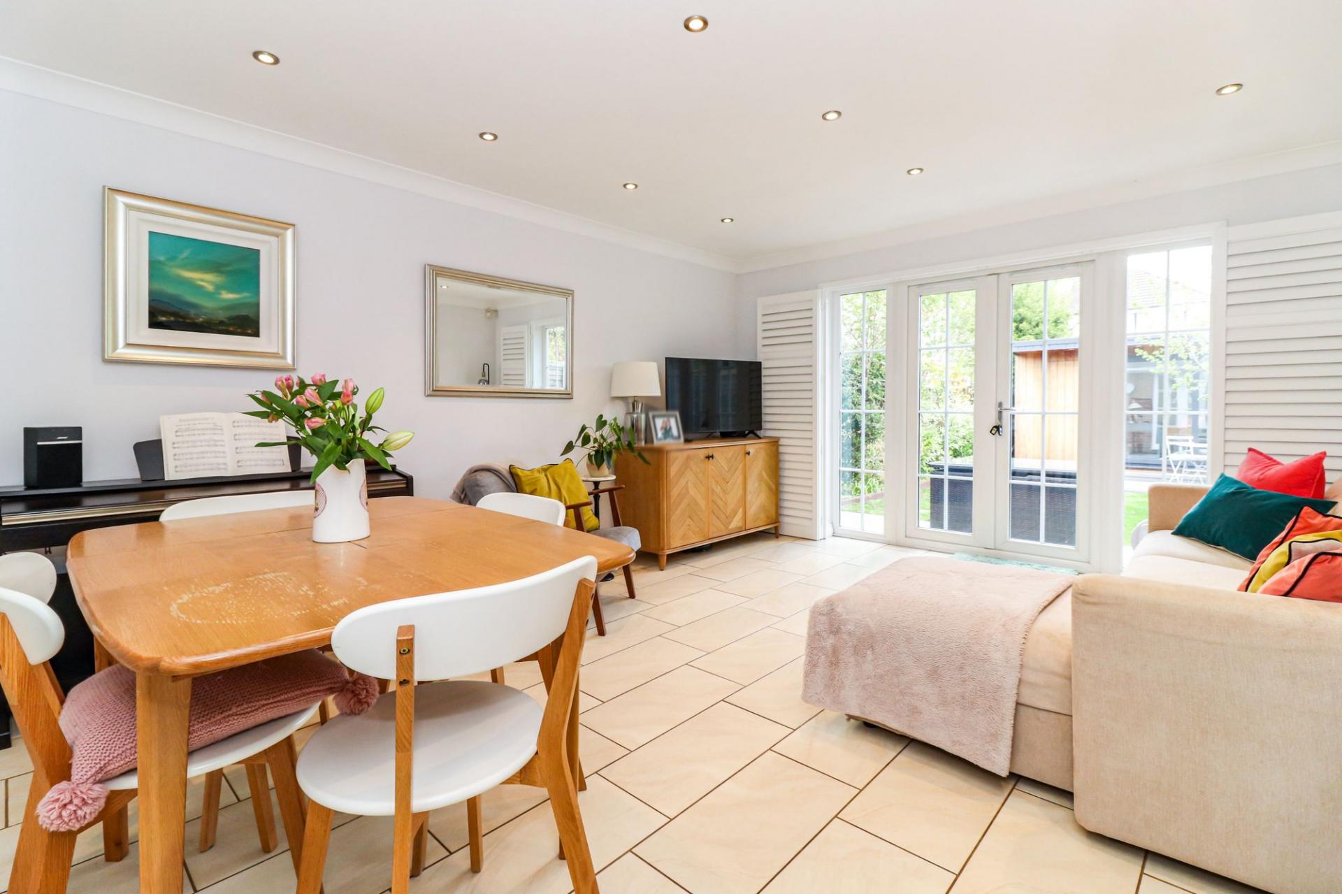 Beautifully presented three-bed mid-terrace with stylish open-plan kitchen, bi-fold doors to landscaped garden, fitted w...