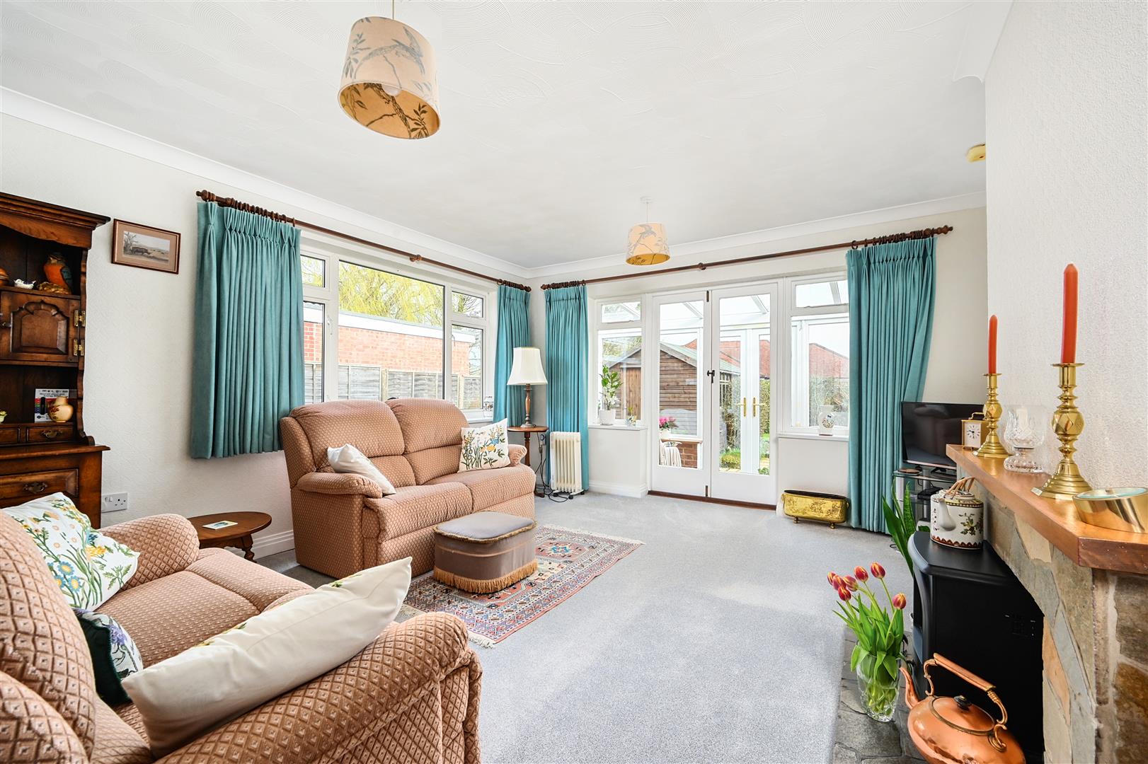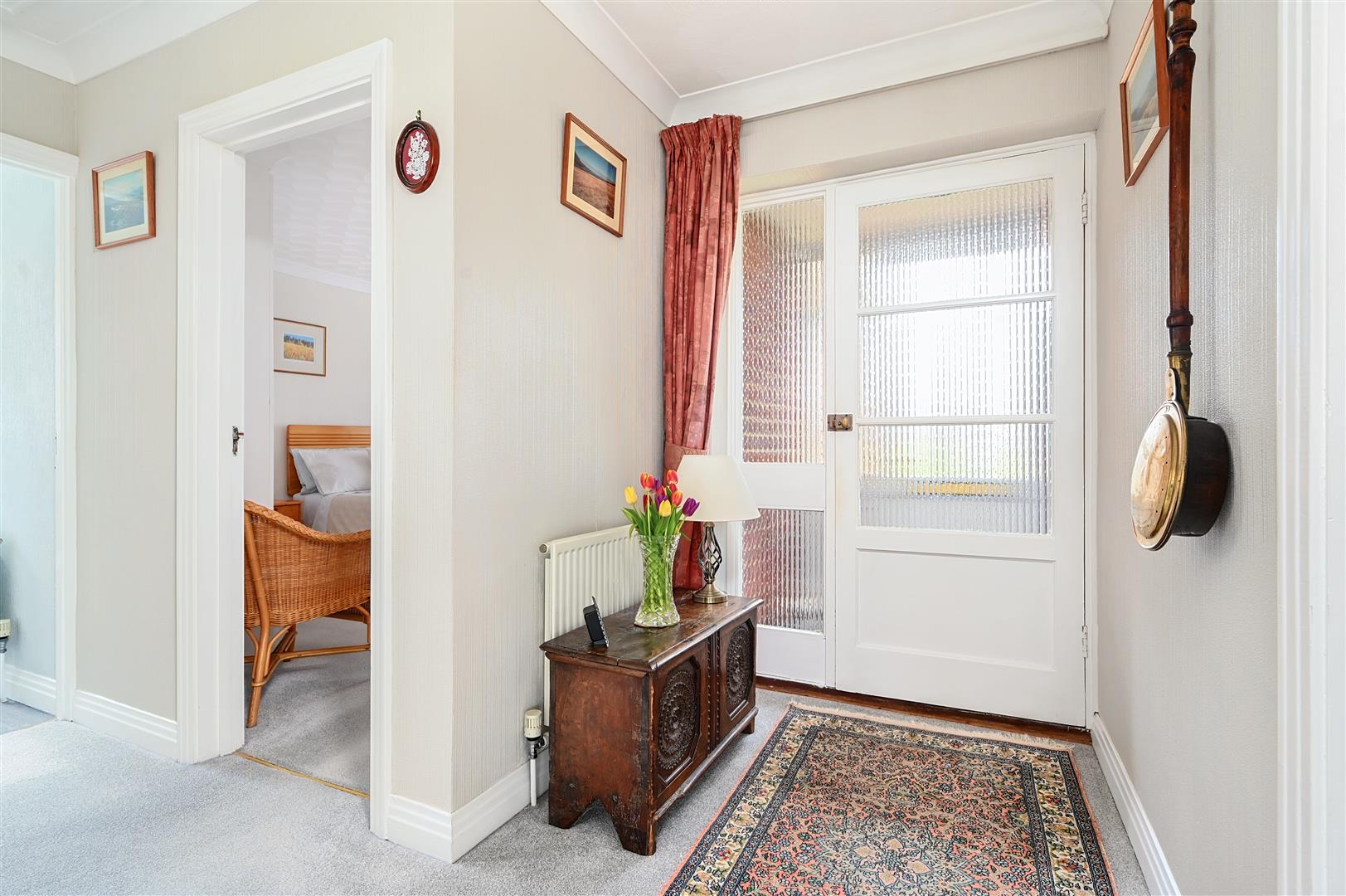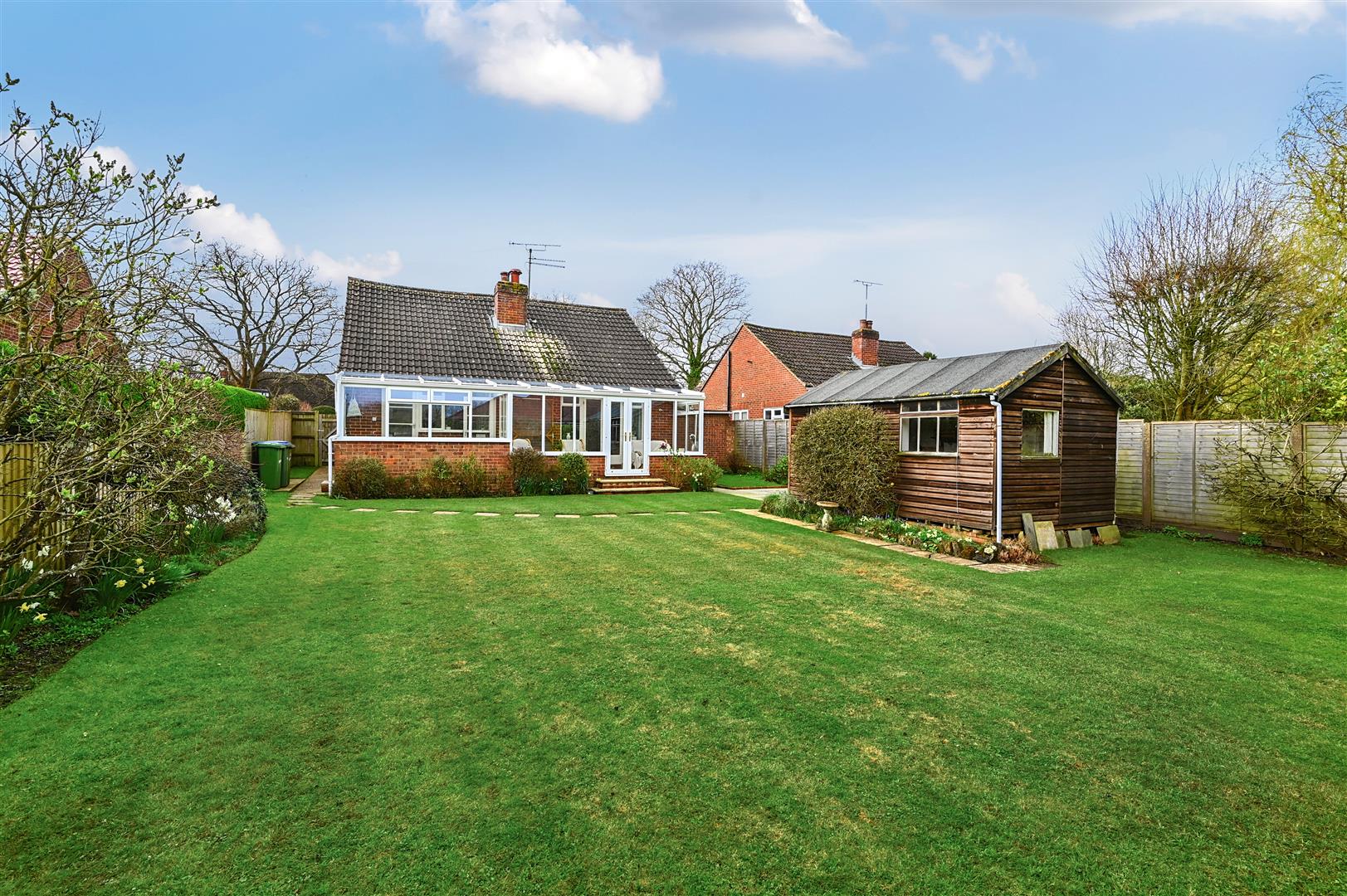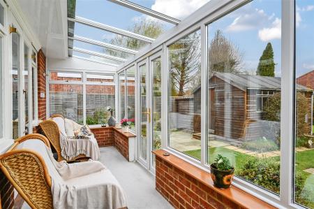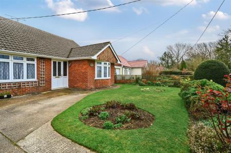 Description - A detached bungalow built of brick elevations under a pitched tiled roof complemented by double-glazing and gas fired central heating. The accommodation is arranged over one floor comprising entrance porch, with entrance hall with both bedrooms at the front of the property. Bedroom one is a large double with large bay window and floor to ceiling fitted wardrobes in one corner, and the second bedroom another good sized double. Living room with feature fireplace and french doors opening onto the conservatory and the enclosed rear garden. Spacious fitted kitchen with room for table and chairs and door to the utility room. Separate toilet with basin and shower over bath next door.