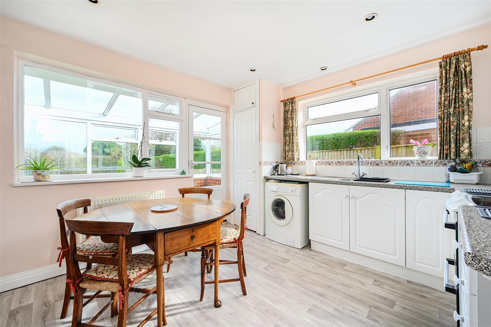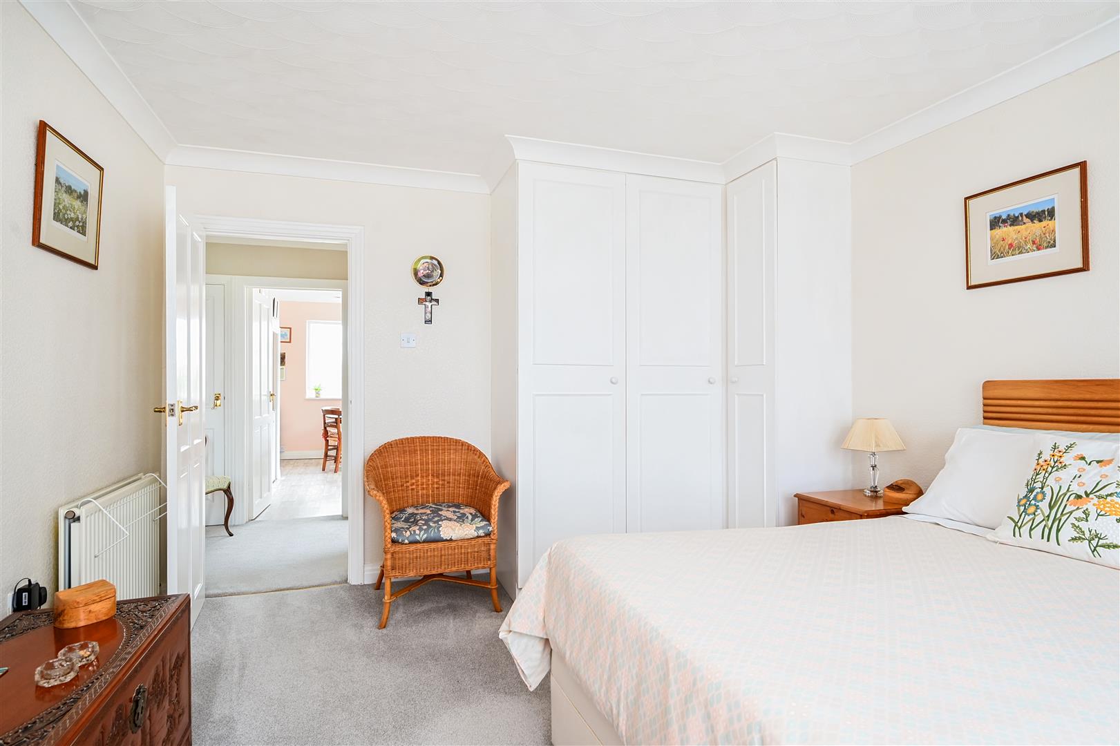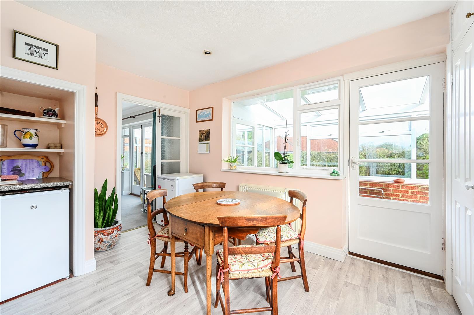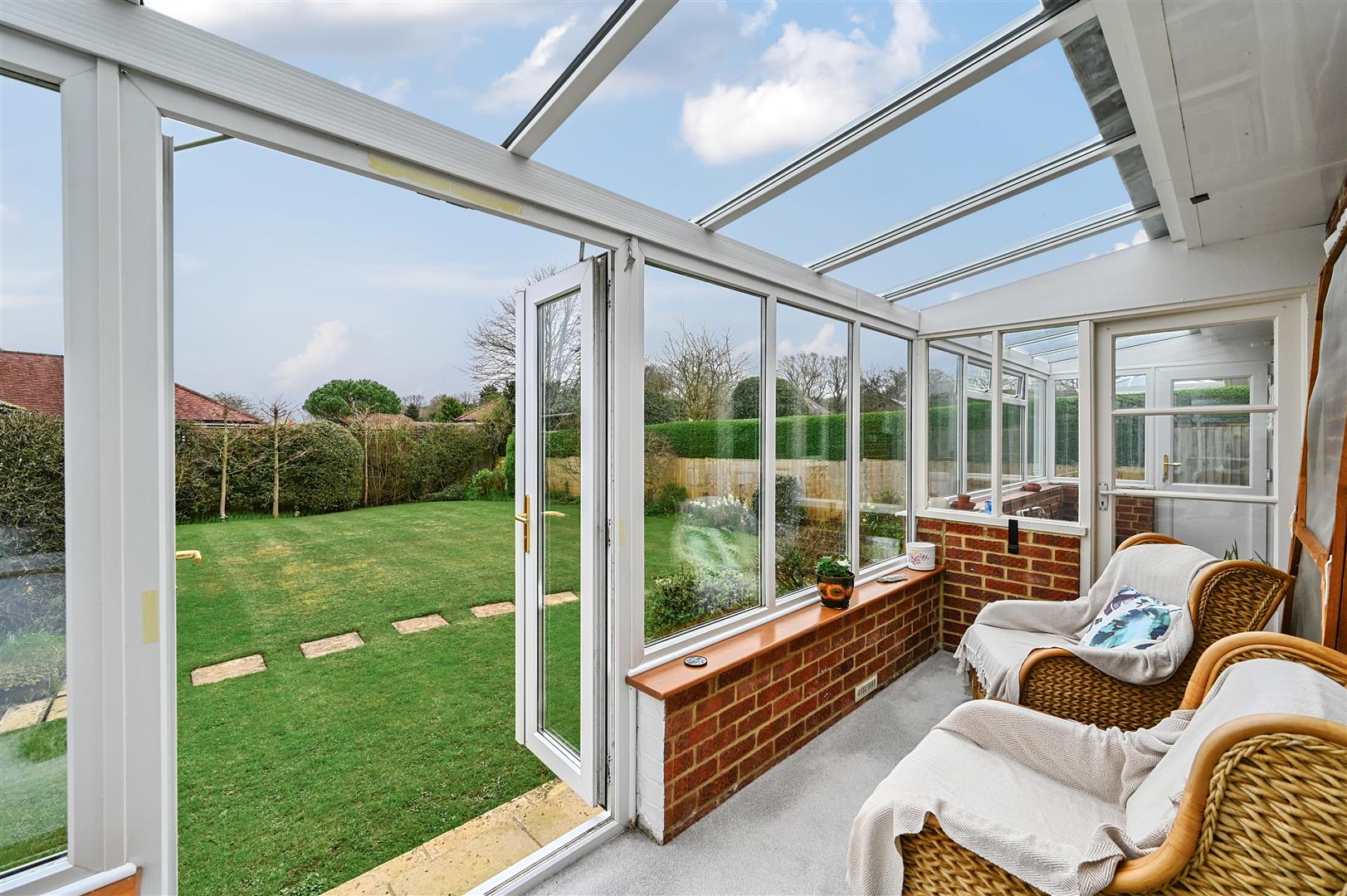 Description - A detached bungalow built of brick elevations under a pitched tiled roof complemented by double-glazing and gas fired central heating. The accommodation is arranged over one floor comprising entrance porch, with entrance hall with both bedrooms at the front of the property. Bedroom one is a large double with large bay window and floor to ceiling fitted wardrobes in one corner, and the second bedroom another good sized double. Living room with feature fireplace and french doors opening onto the conservatory and the enclosed rear garden. Spacious fitted kitchen with room for table and chairs and door to the utility room. Separate toilet with basin and shower over bath next door.