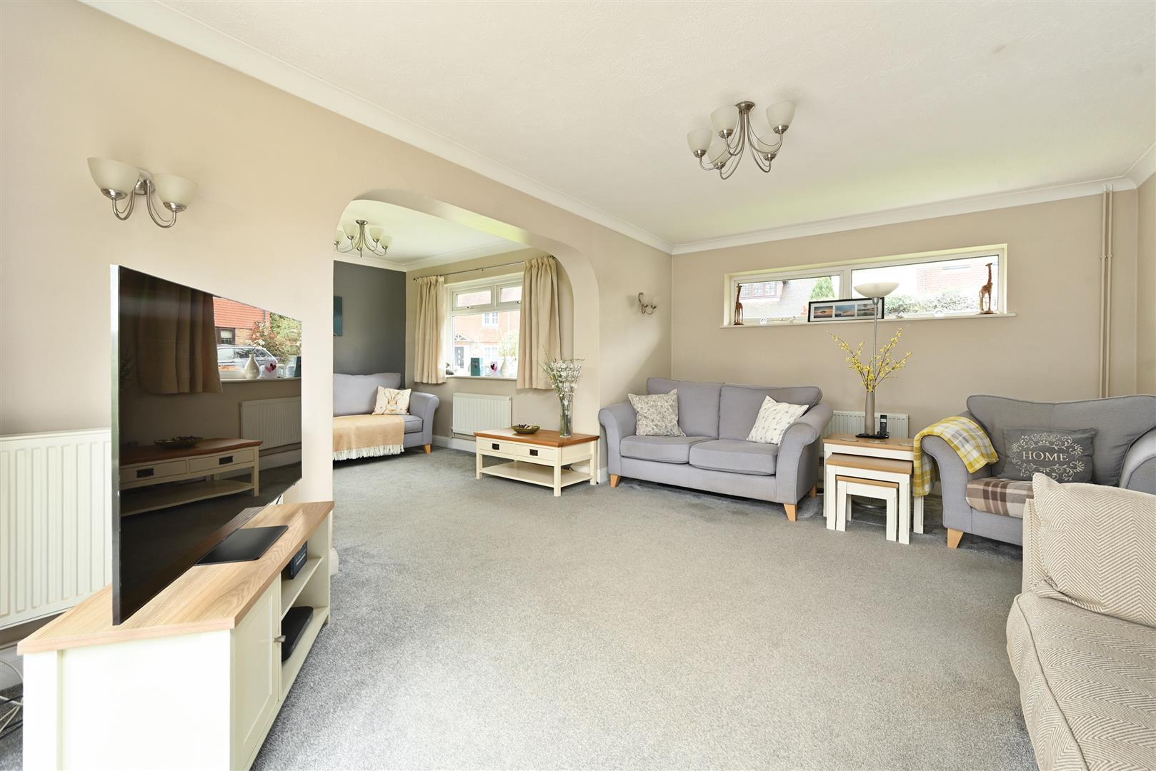 "Saxton" is found behind a neat privet hedge, and the approach features separate garage and parking for multiple vehicles on one side, whilst the other boasts the buffer of a wrap-around lawned garden.