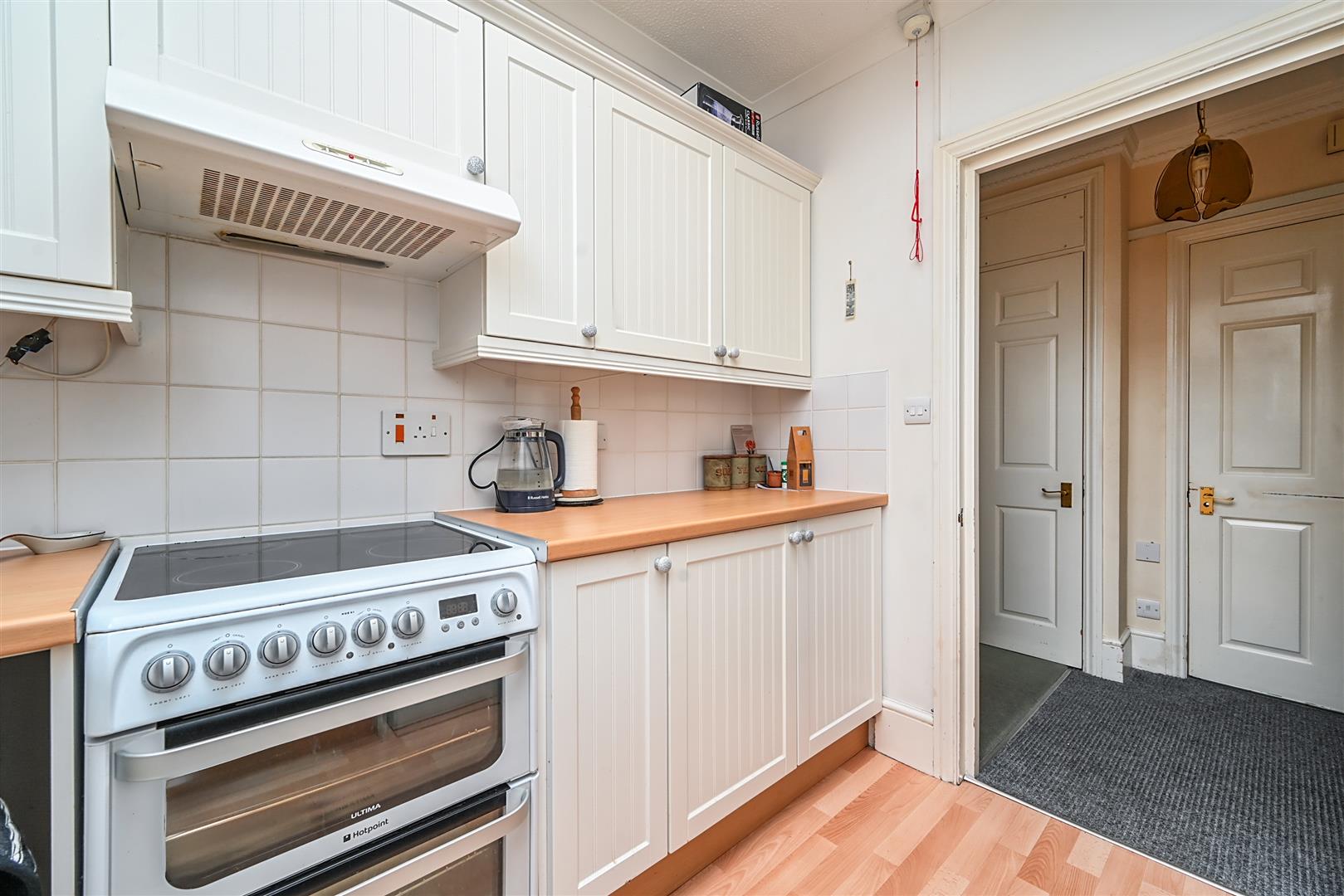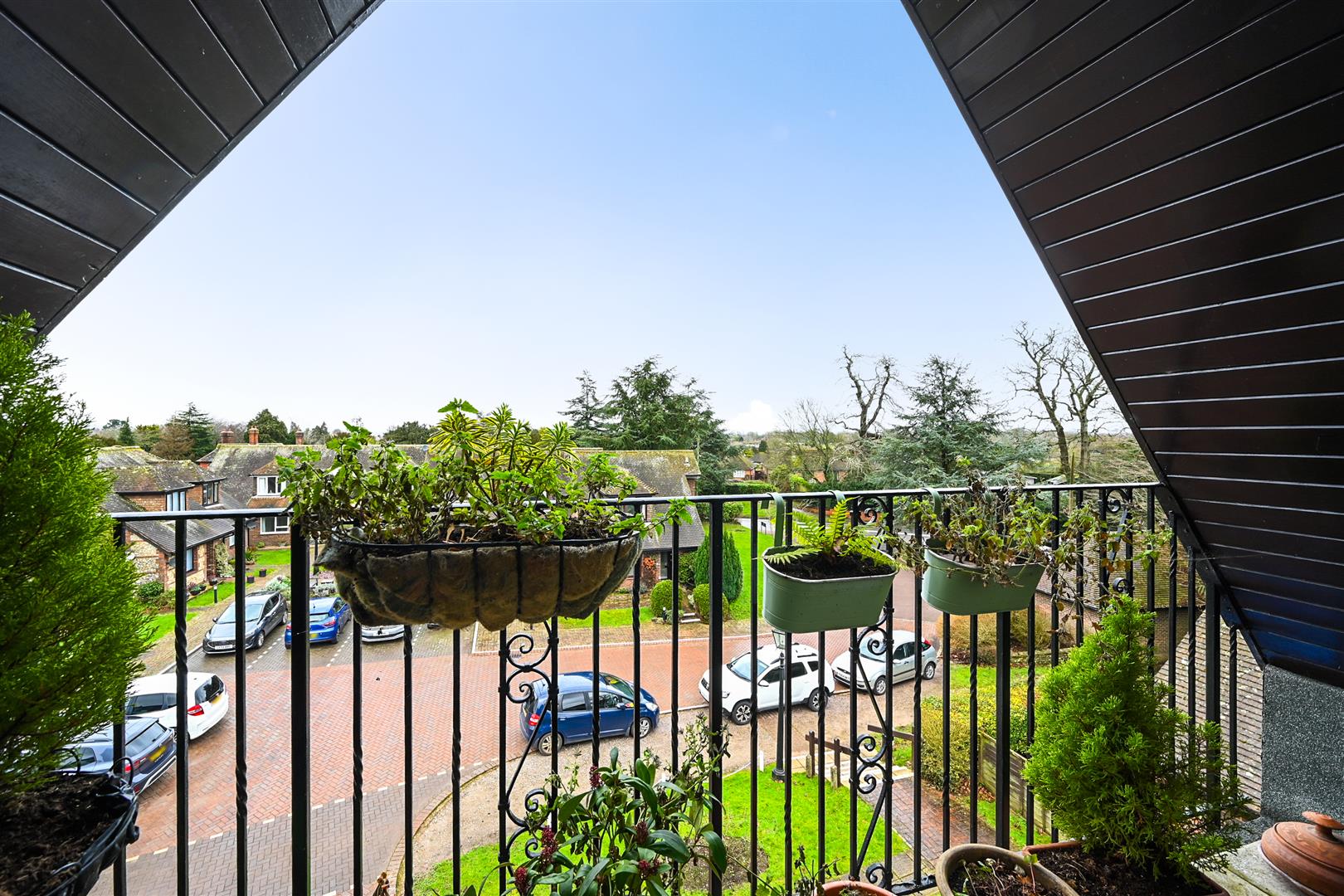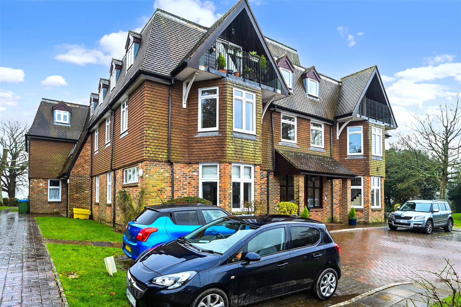 The apartment features spacious and well-presented accommodation, including a fitted kitchen, a bathroom with a wet-room style accessible shower cubicle, and a sitting/dining room that boasts double-glazed sliding patio doors opening onto a private balcony with views of Henfield village. There are two good-sized bedrooms, the main with fitted wardrobes, and the entire apartment is decorated in neutral tones, allowing the next owner to move in right away, although updates may be desired.