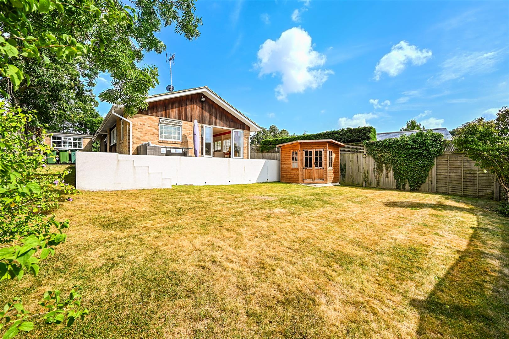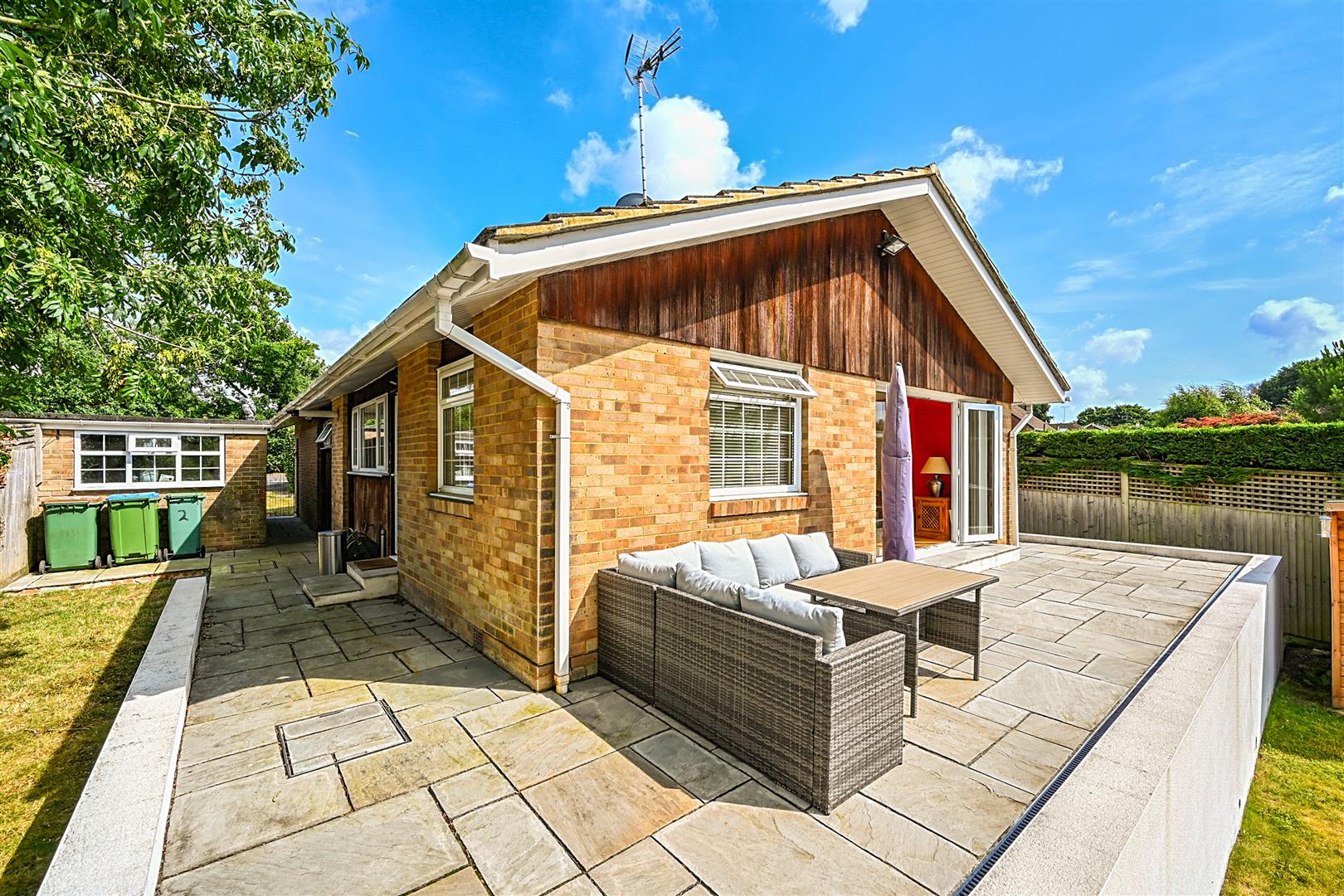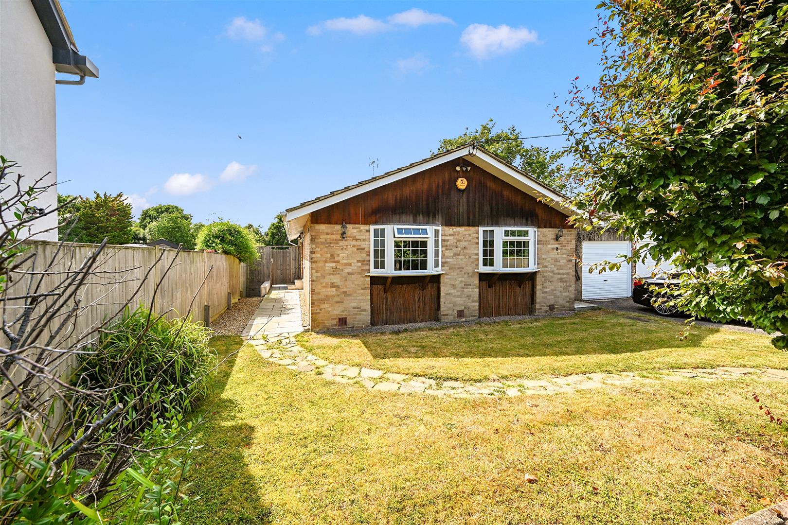 Outside, there is a private driveway leading to a detached garage, which has been partitioned to create two spaces with door access to both. In the enclosed rear garden, a summer house with power has been added. The garden enjoys a favourable westerly aspect, and the large patio flowing from the bungalow provides a lovely space to relax and enjoy the last rays of sunshine.