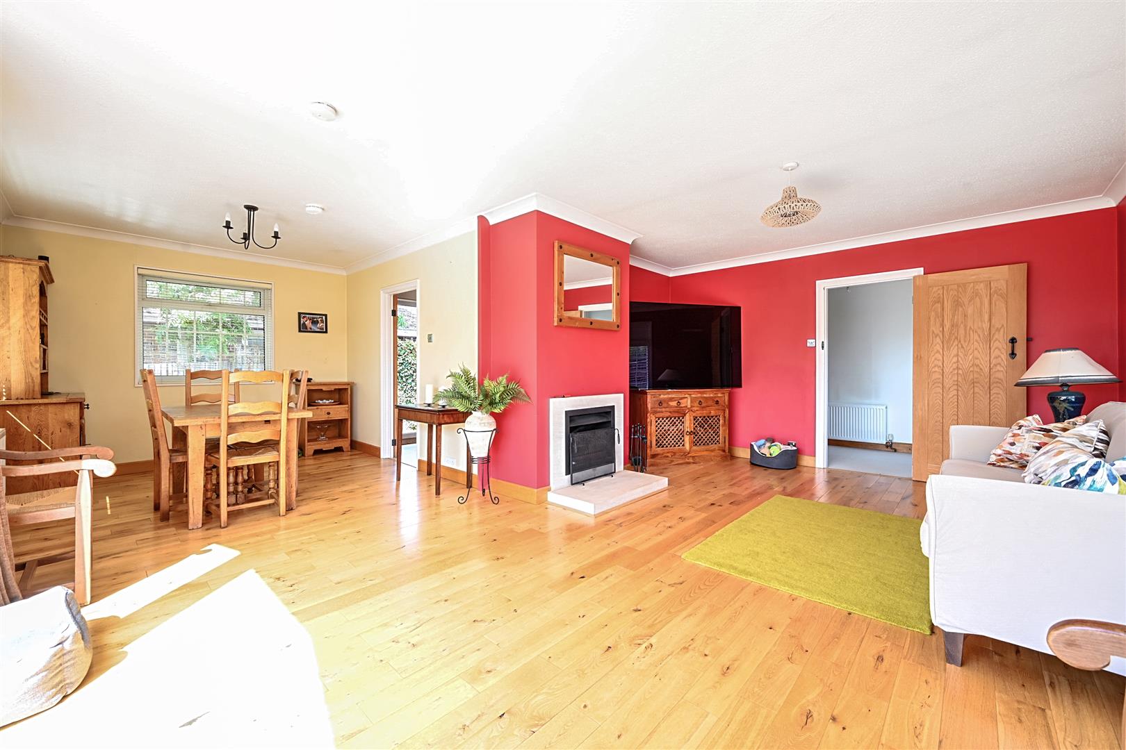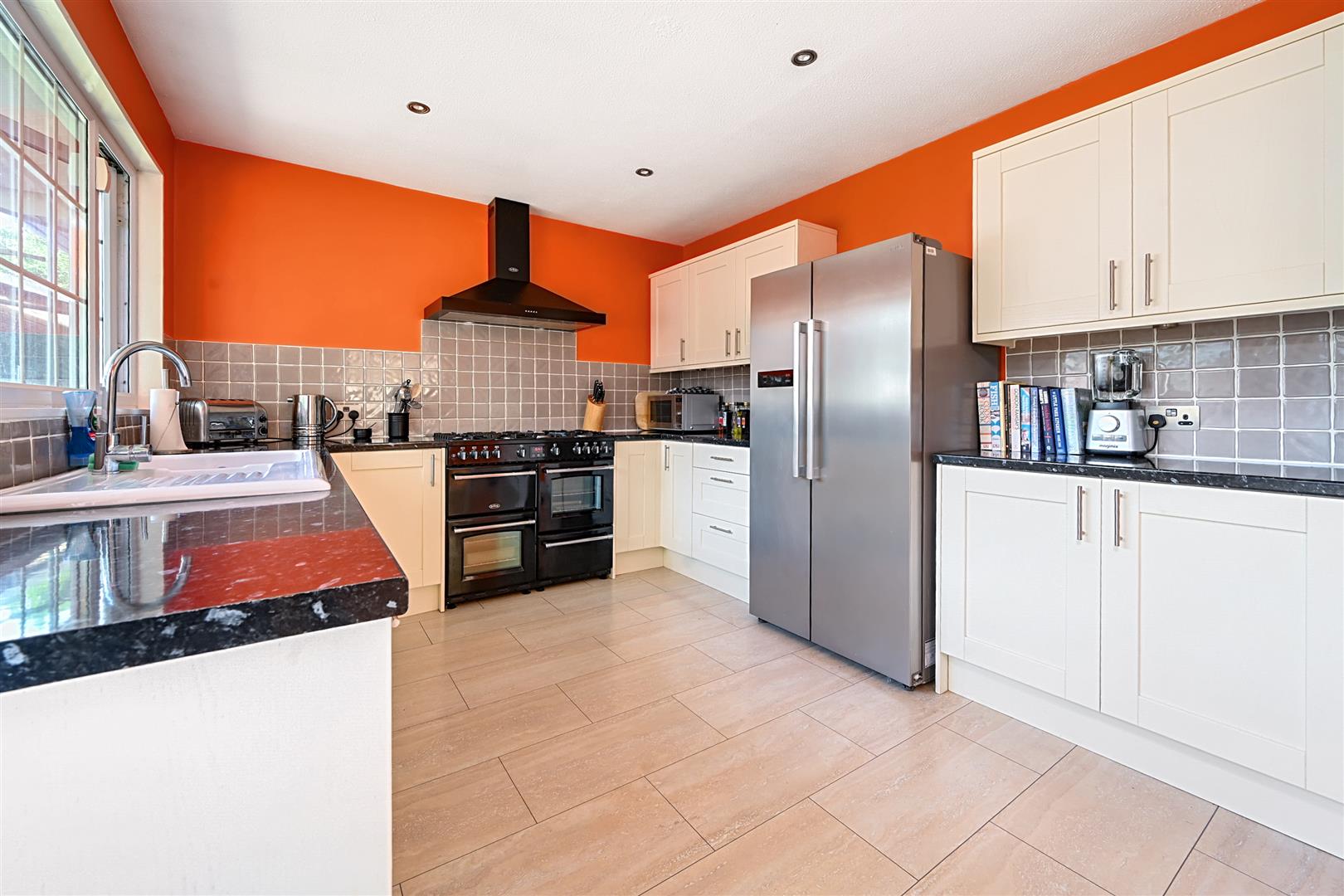 The well-presented accommodation comprises a large entrance hallway leading to a bright and spacious L-shaped wrap-around lounge and dining area, featuring a fireplace and patio doors that open to the enclosed rear garden. The modern fitted kitchen has additional access to both the side and rear gardens, and it is well-equipped with high and low-level storage on three sides, providing ample counter space centred around a feature "range-style" cooker.