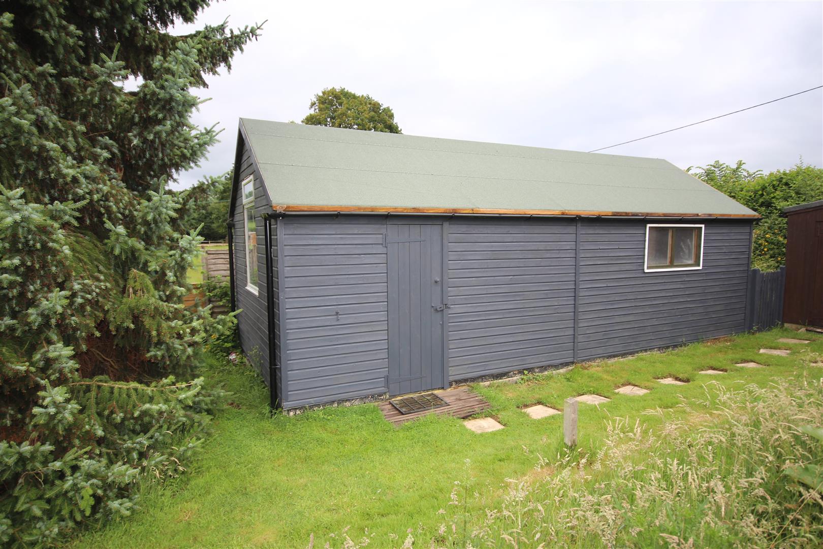 To one side of the front of the property is a private driveway proving ample parking leading to a double detached garage with a gym/studio above which subject to the necessary planning consents would make an ideal 'Annex' if required with Solar panels used to heat the swimming pool. To the other side of the property is a five bar gate leading to a further area suitable for additional parking along with a lawn area. To the side of the porch are two store cupboards. The rear garden extends to approximately three quarters of an acre being mainly laid to lawn with patio areas, flower borders and mature shrubs and trees along with an enclosed heated swimming pool, large timber building used as a sports room/studio and a further timber garden store adjoining the side of the garage.
