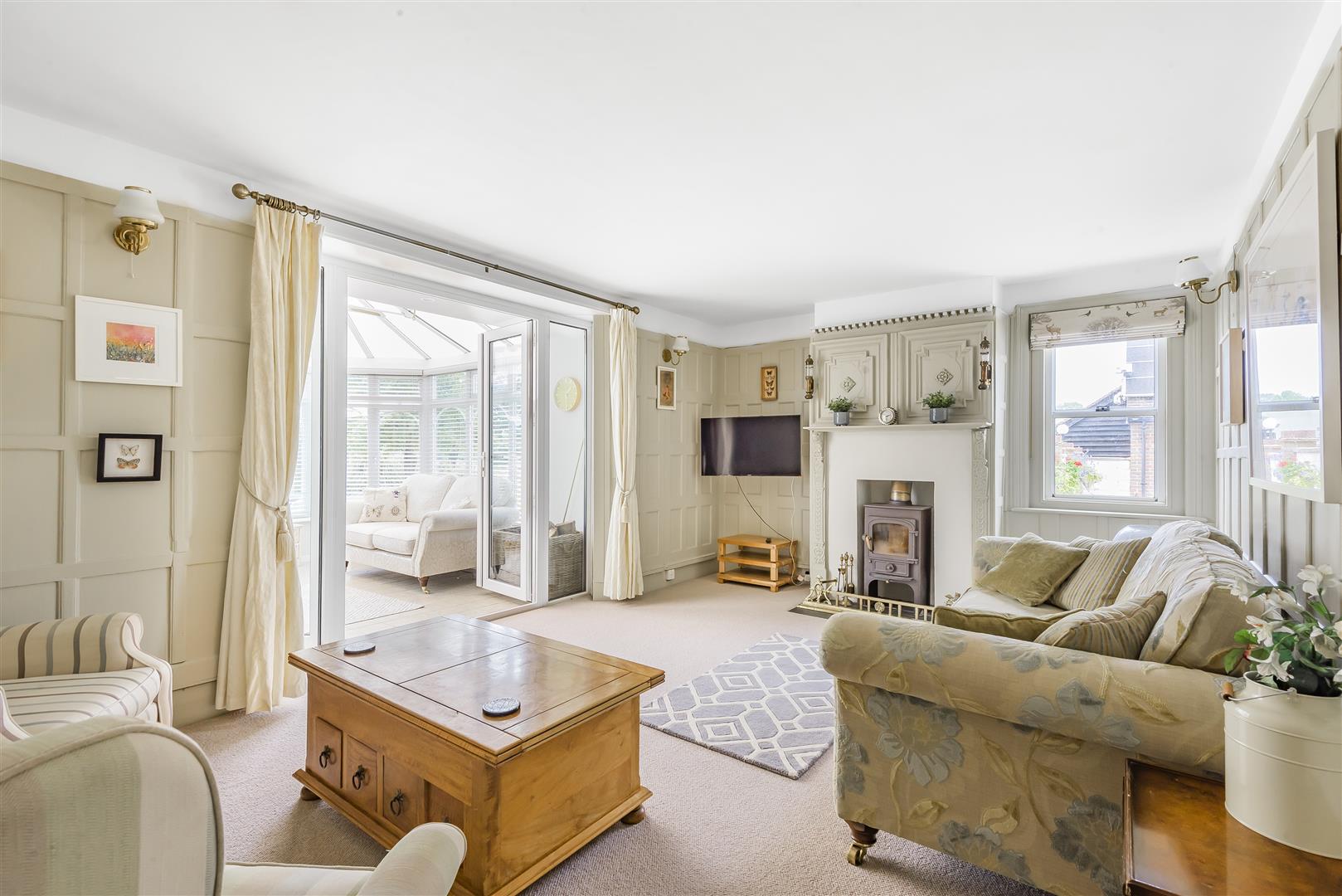 Step Inside - From the entrance porch is an Oak front door opening onto an impressive dining room with wooden flooring, fireplace, bay window and side window and door opening to the sitting room with ornate paneled walls and fireplace housing a wood burning stove. French doors lead onto a spacious upvc double glazed conservatory running the length of the rear of the property with French doors leading onto the rear garden. From the dining room a further door leads to the family room which in turn leads to the kitchen/breakfast room providing a good range of fitted base and eye-level units, French doors then lead to the conservatory. There is an inner hall with two storage cupboards and cupboard housing oil fired boiler, door to side and doors to a cloakroom and utility room. Stairs from the dining room rise to the first floor landing where there are four bedrooms one with en-suite bath room and a family bathroom. A further staircase rises to the second floor with two further bedrooms and shower room.