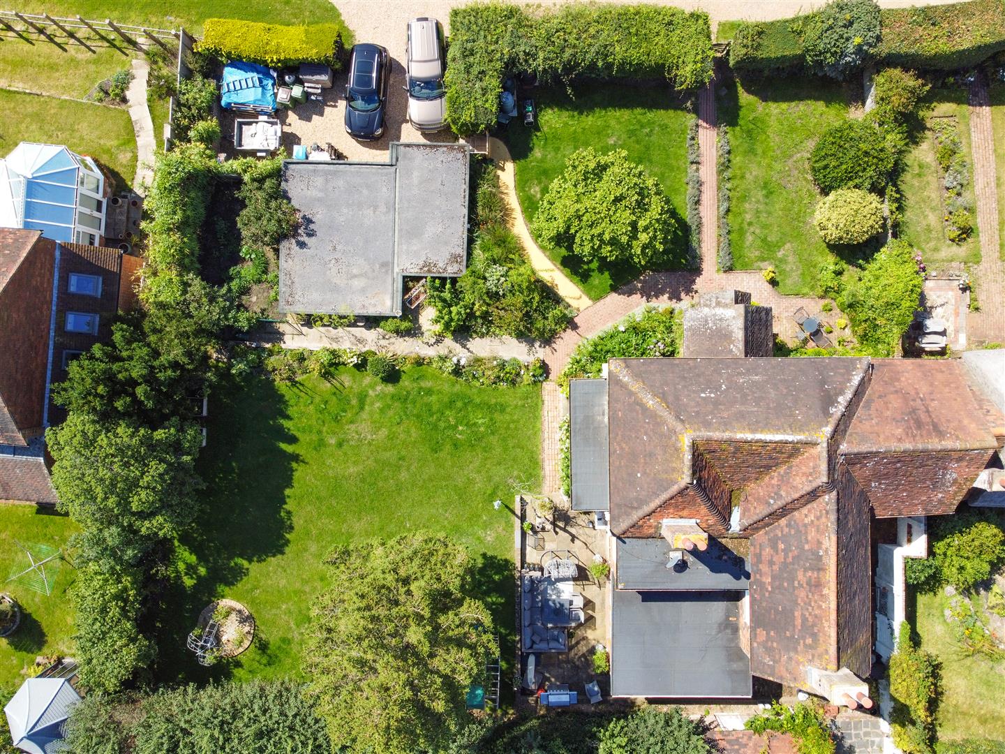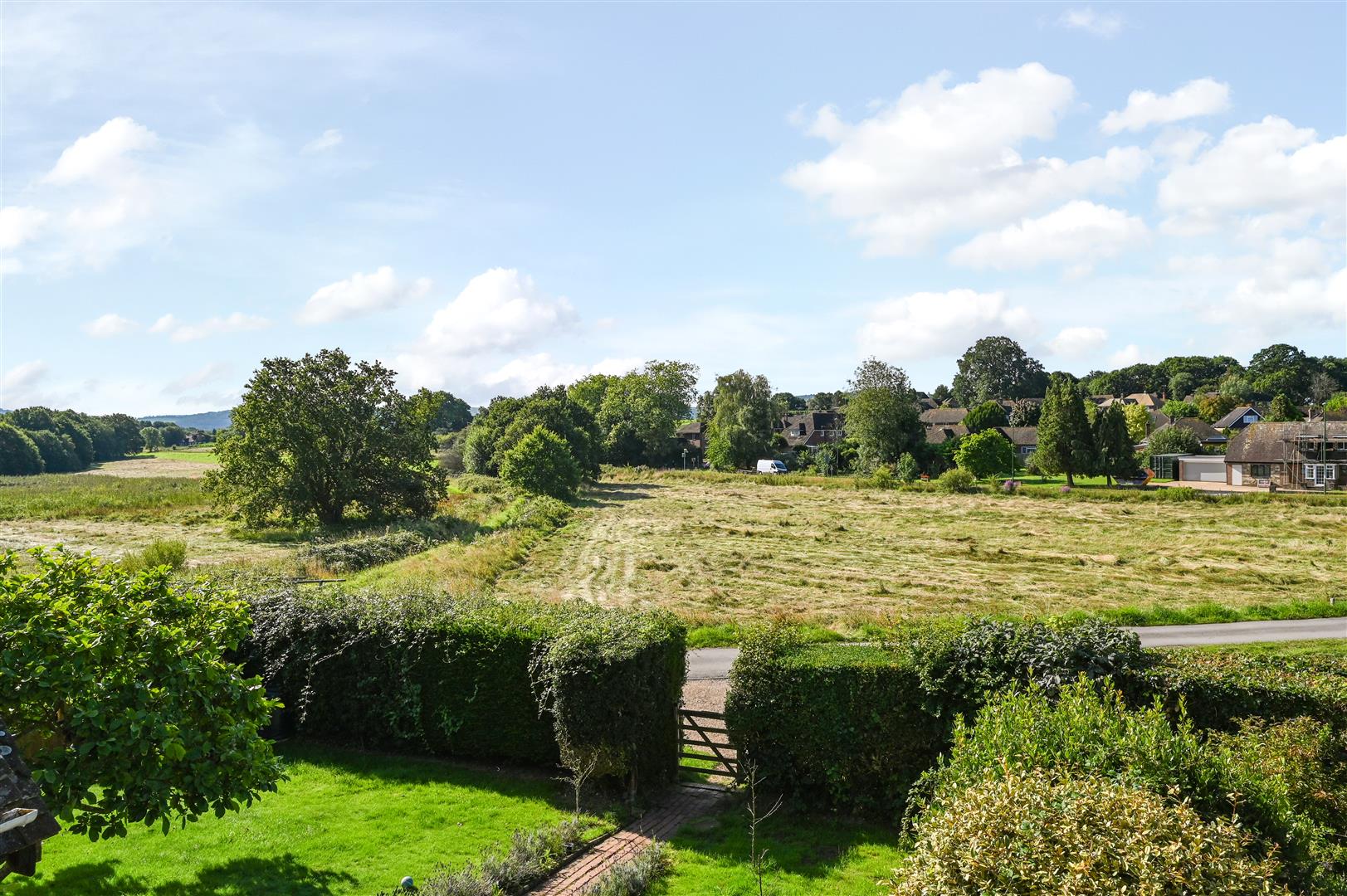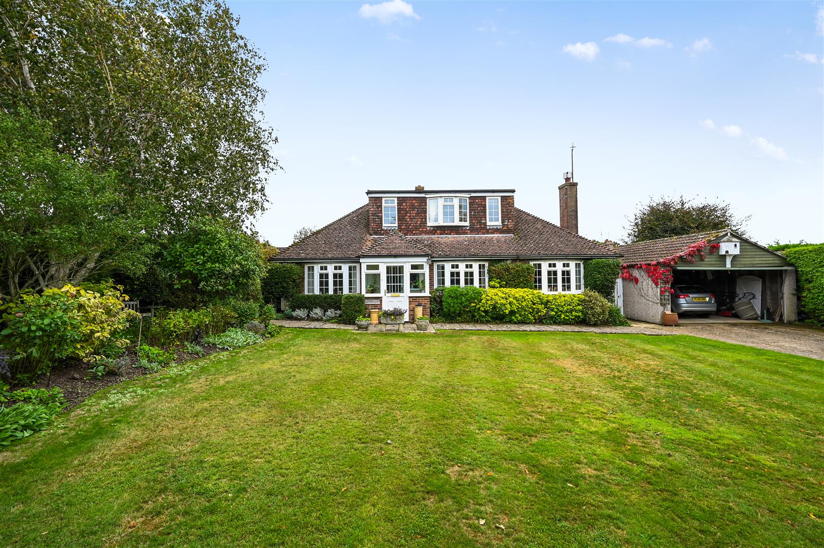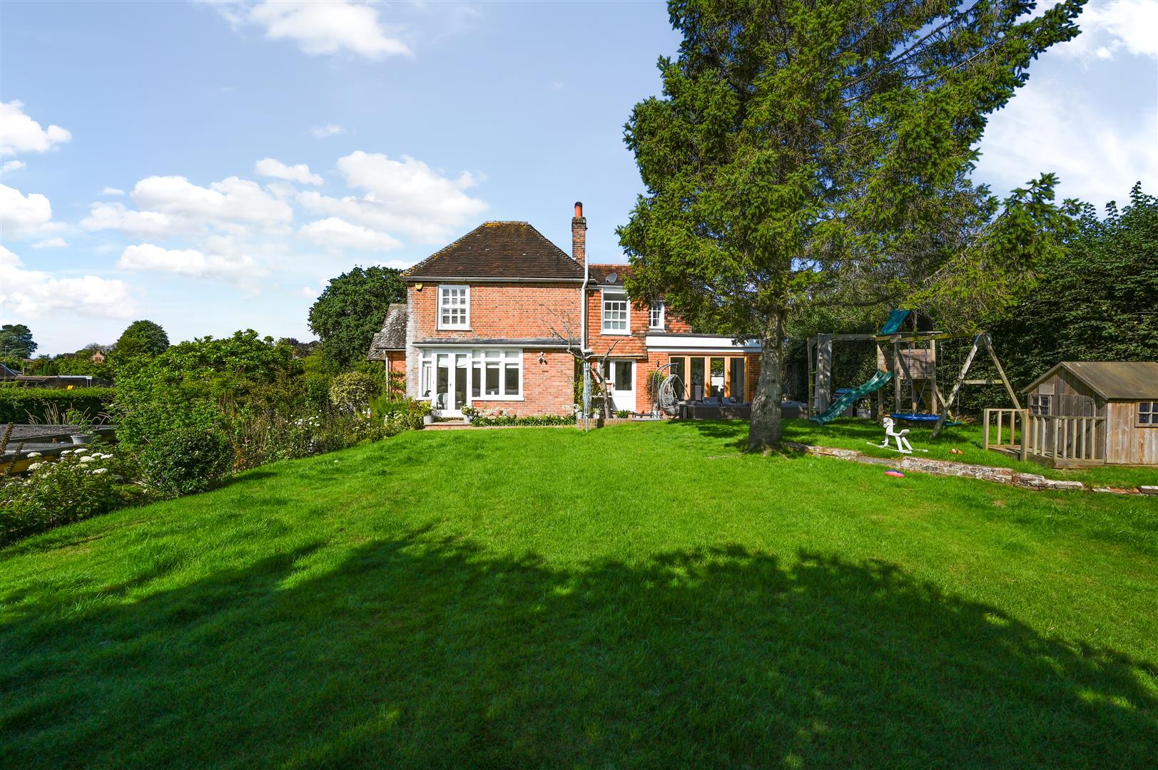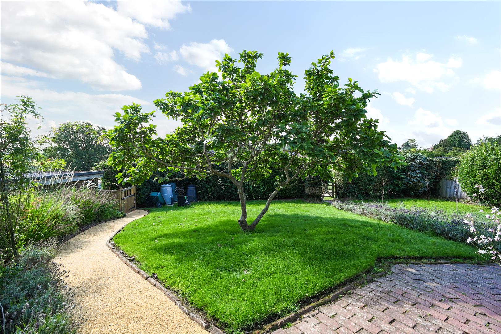 A large south facing laid to lawn at the side of property overlooking the Common.