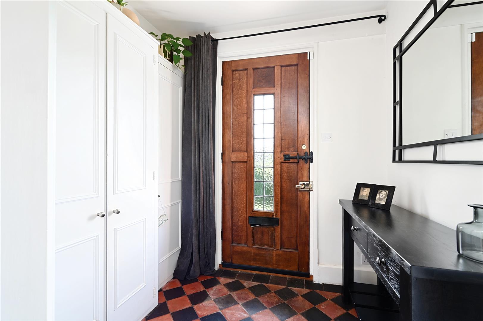 Entrance Hall with the original tiles and storage cupboards.