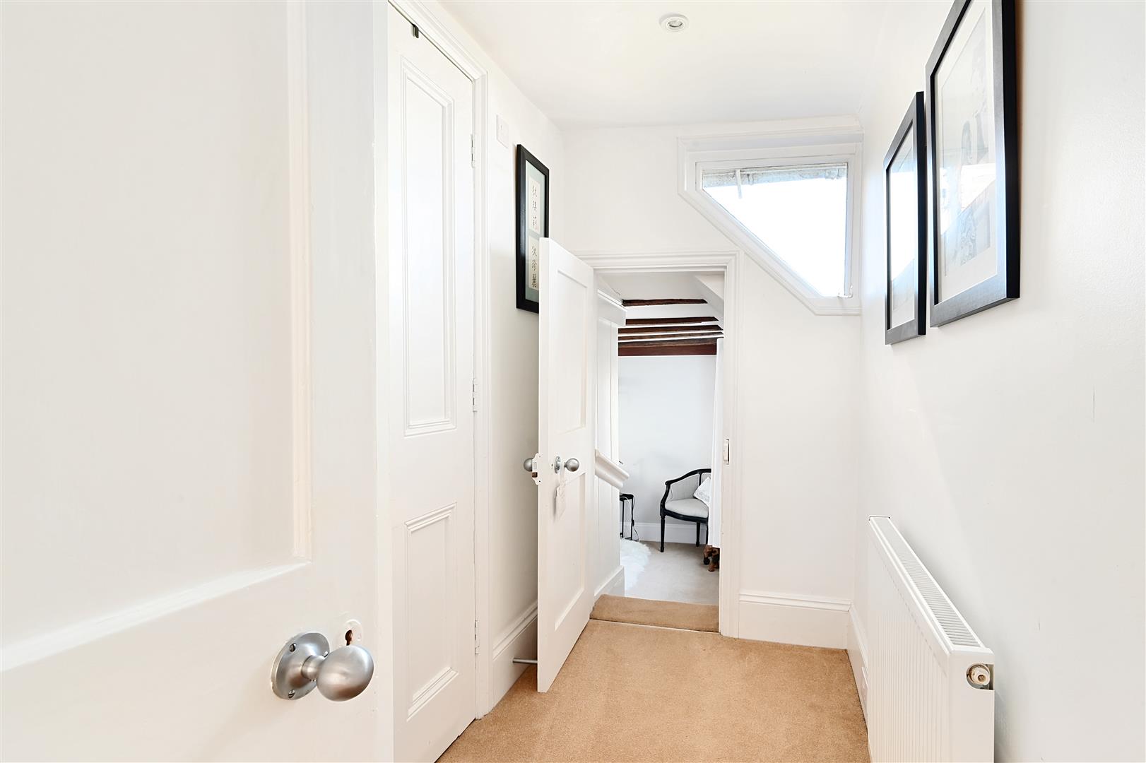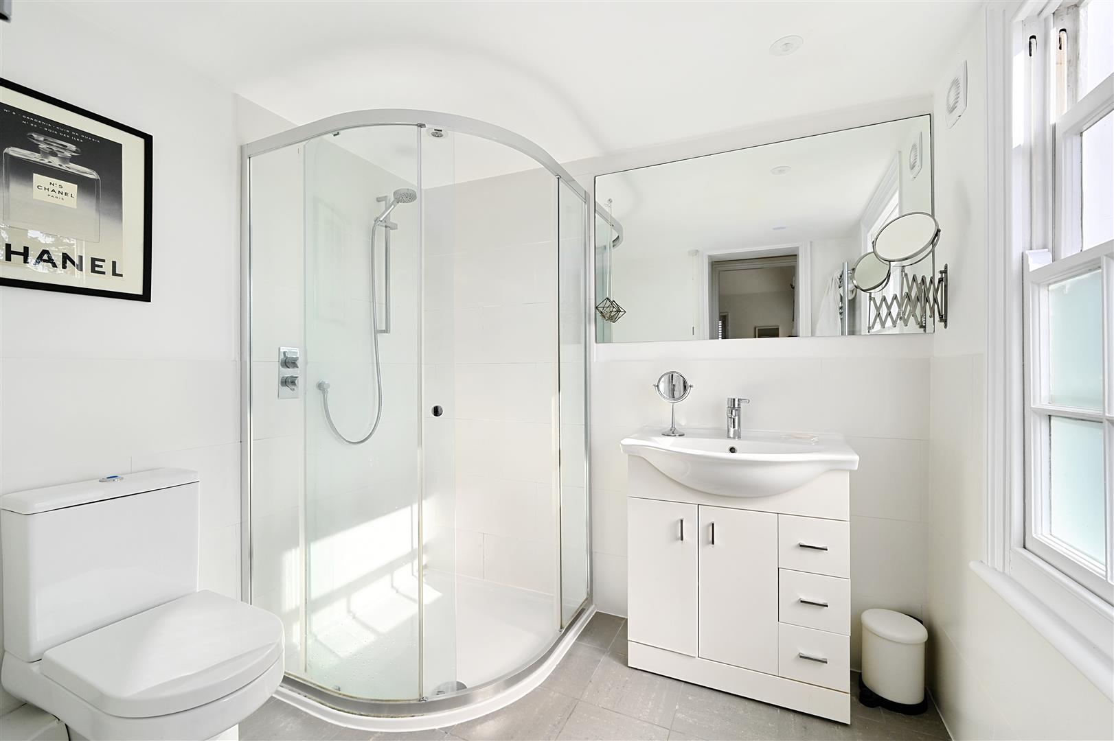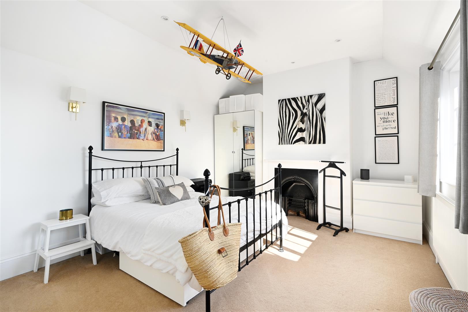 Double aspect Master Bedroom with lovely views, high ceilings and a modern fitted en-suite shower room with under floor heating.