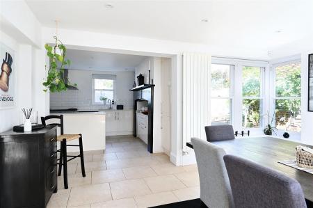 Paved terrace directly off open plan extension large enough for dining and entertaining.