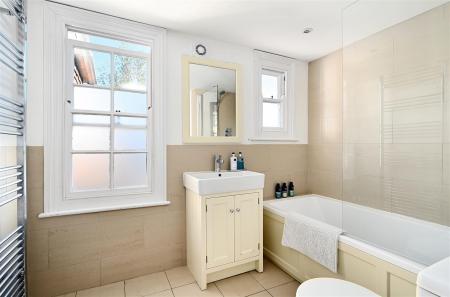 Modern Fitted Family Bathroom with shower over bath and under floor heating.