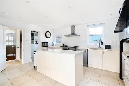 An extended and fully fitted open plan kitchen/breakfast/family room. The modern fitted kitchen is to the highest of specifications with granite work surfaces and a large range style cooker, dishwasher, two under-surface fridges in the central island and a range of drawers and cupboards. Additional storage is provided off the kitchen via the walk-in larder which has sufficient space for a wine fridge/further appliances and shelving units.