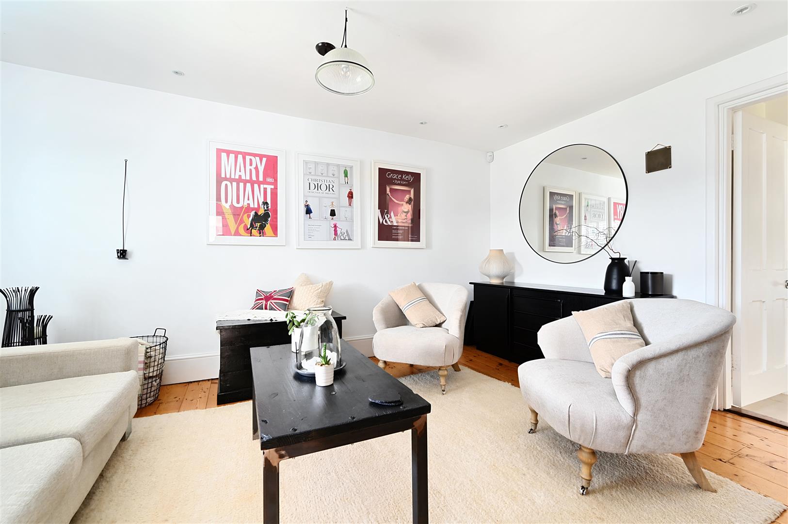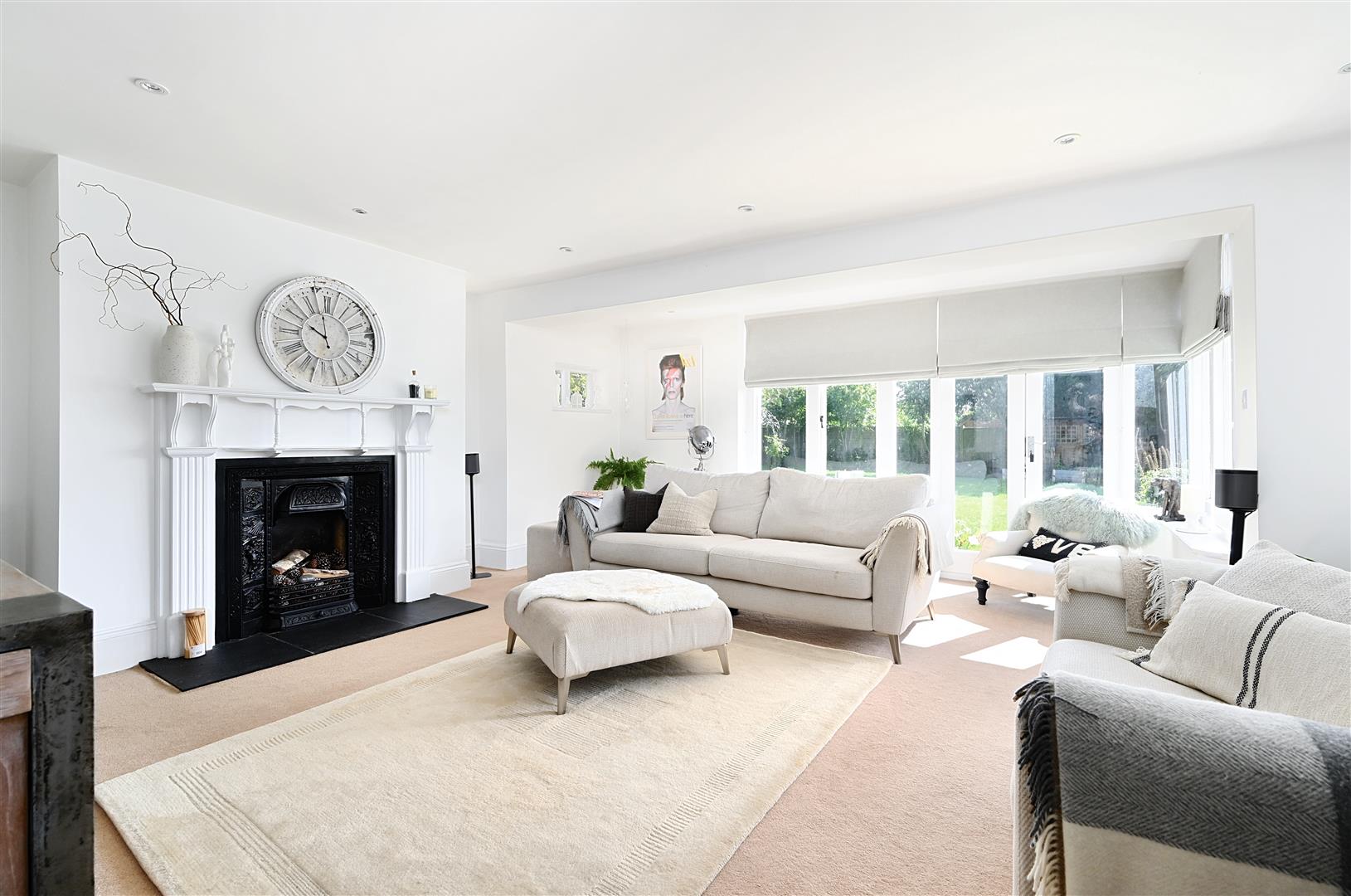 Formal double aspect Lounge with a feature fireplace and a beautiful outlook onto the south facing garden with distant views over the Common towards the South Downs.