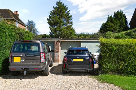 Private driveway/parking with access to a double garage and a further single garage.