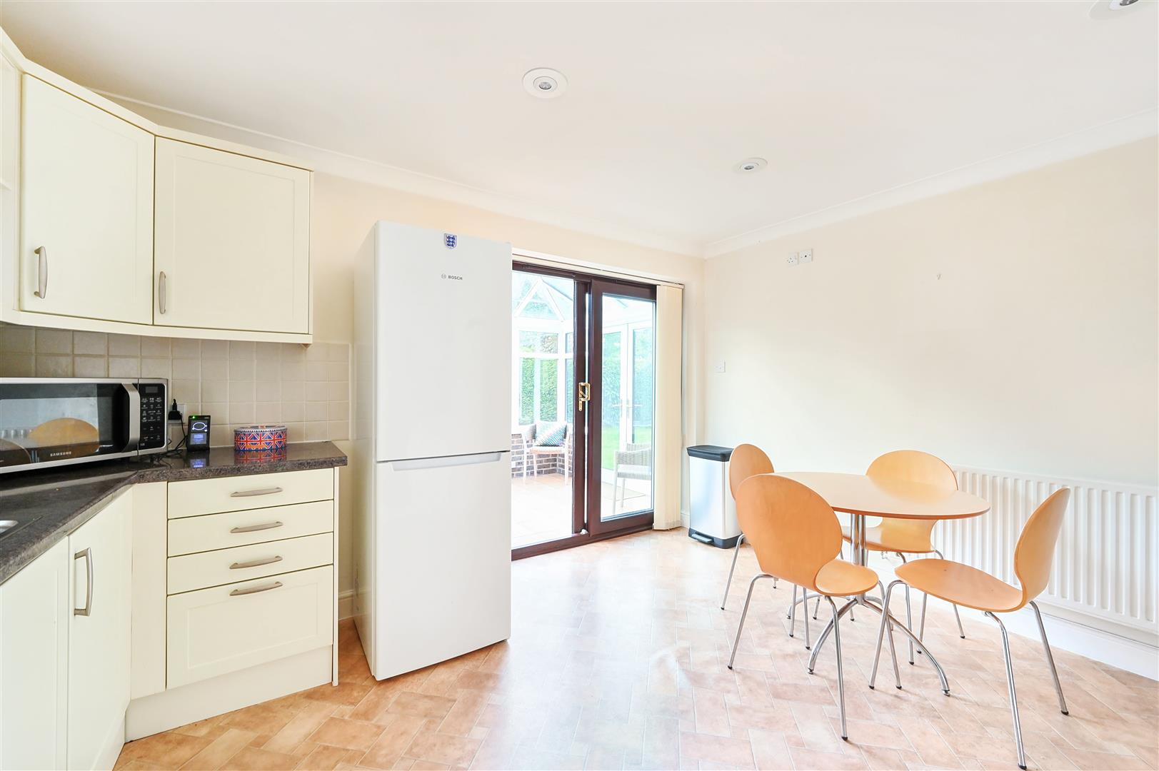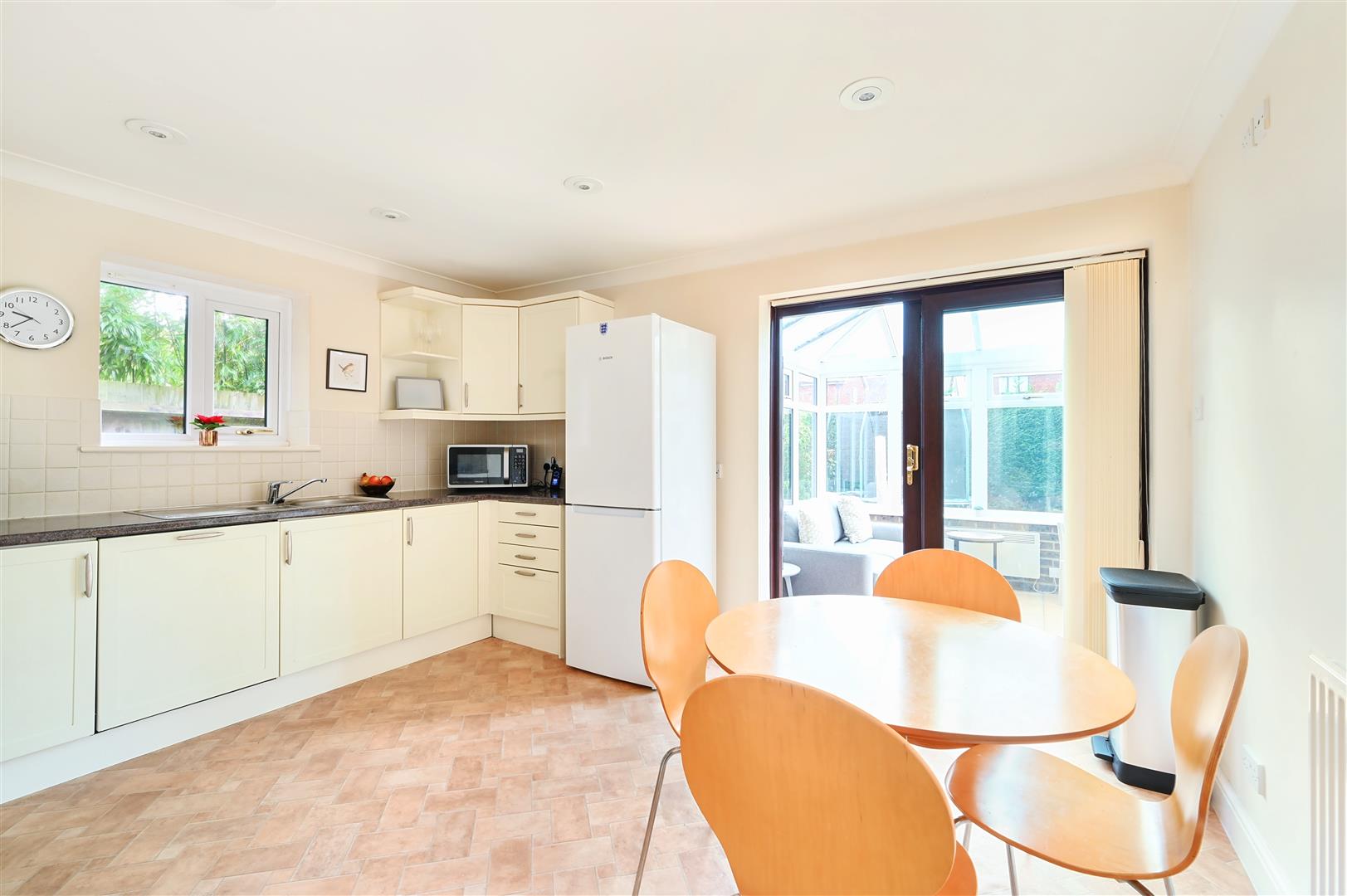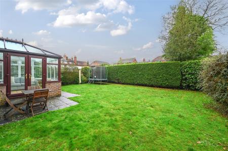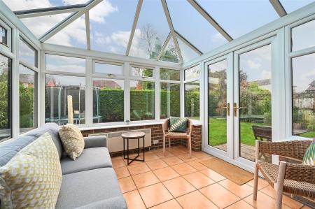 Description - A large 'L' shaped detached well presented family house built of brick elevations under a pitched tiled roof and is complemented by gas central heating and double-glazing. The accommodation is arranged over two floors comprising on the ground floor of entrance porch, large and spacious entrance hall, cloakroom, study/family room, bright and spacious 'L' shaped sitting/dining room with windows overlooking the south facing rear garden, utility room, kitchen/breakfast room with space for a large table and chairs and sliding patio doors leading to the conservatory.