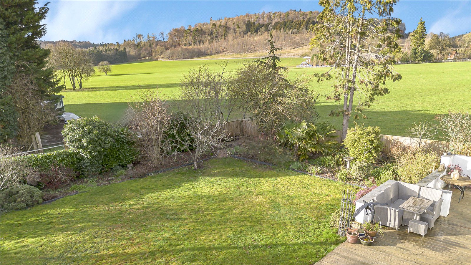 - Generous terrace and gardens blending into open countryside