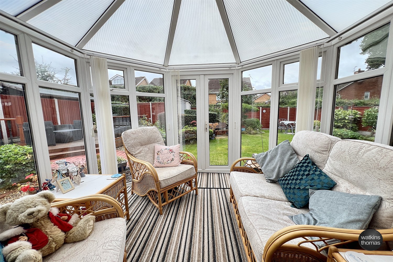 The rear garden is a particular attribute of this property in that it is wide compared to most in the locality. The garden area is extensively enclosed by a mix of close board panels and lap fencing between concrete posts. The side pathway opens to a paved patio area which runs to the conservatory. Beyond this there is an expanse of lawn bordered by shrubs and a further seating area. The property also has the benefit of a raised decked area with balustrade surround to the rear of which there is a slate garden and store.