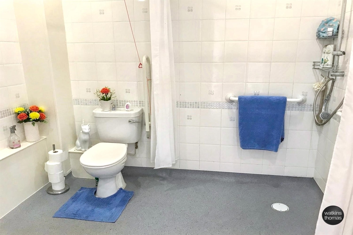With low flush WC, pedestal mounted wash hand basin, wall mounted shower, fully tiled wall surround, wall mounted electric heater, waterproof non-slip flooring, extractor fan and shaver point.