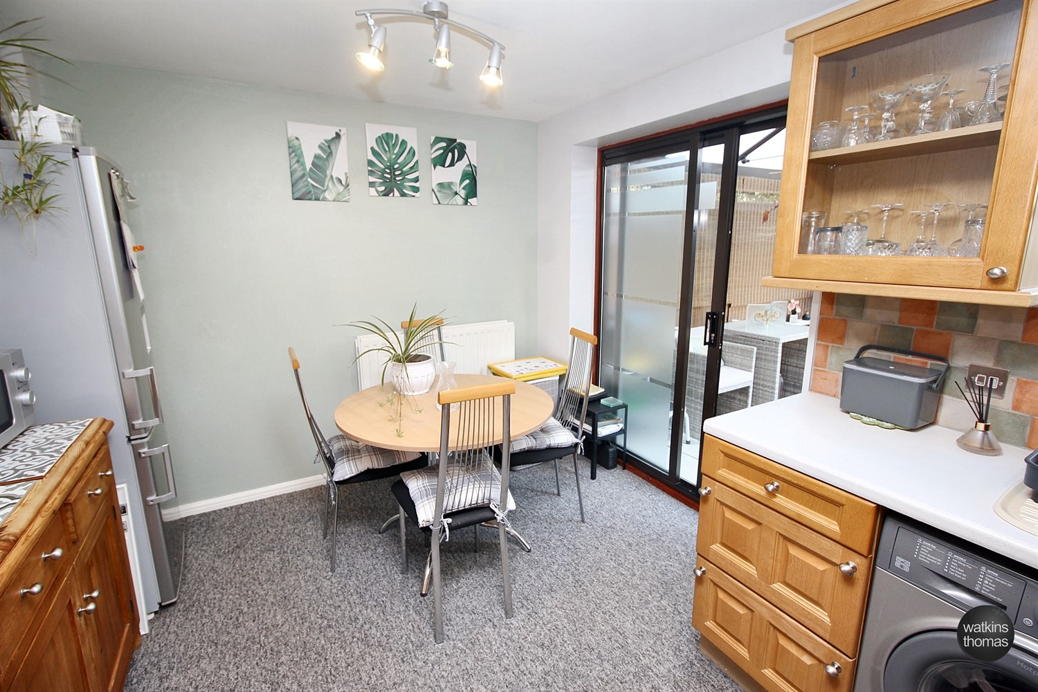 With rear aspect double glazed window, panelled radiator and a range of units comprising sink drainer unit with work surfaces, tiled splash backs, base units under with matching wall units, integrated electric double oven, gas hob and cooker hood over, plumbing and space for washing machine, plumbing and space for dishwasher, space for upright fridge freezer, space for dining table and double glazed patio door to the conservatory.