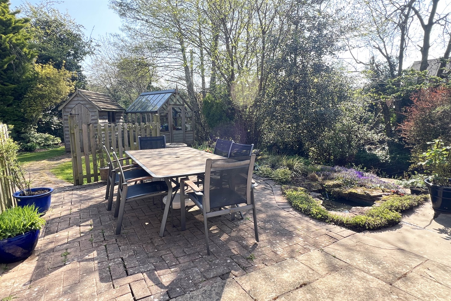 Beyond a brick pavior parking space there is a brick pavior pathway with stone border which runs to a picket gate and opens up to the first rear garden area which comprises a circular patio with pathway off and a deep stone border. The pathway with a stone border continues to a second patio/entertaining area and a brick pavior seating area. These areas are bordered by shaped rockeries and beds and steps lead down to a brook. The gardens are mature and established. A pathway leads to a GARDEN STORE the walkway to which has a block border, there is a further lawn, GREENHOUSE (7'6 x 6'), GARDEN SHED and LOG STORE. There is also an outside tap and electric point.