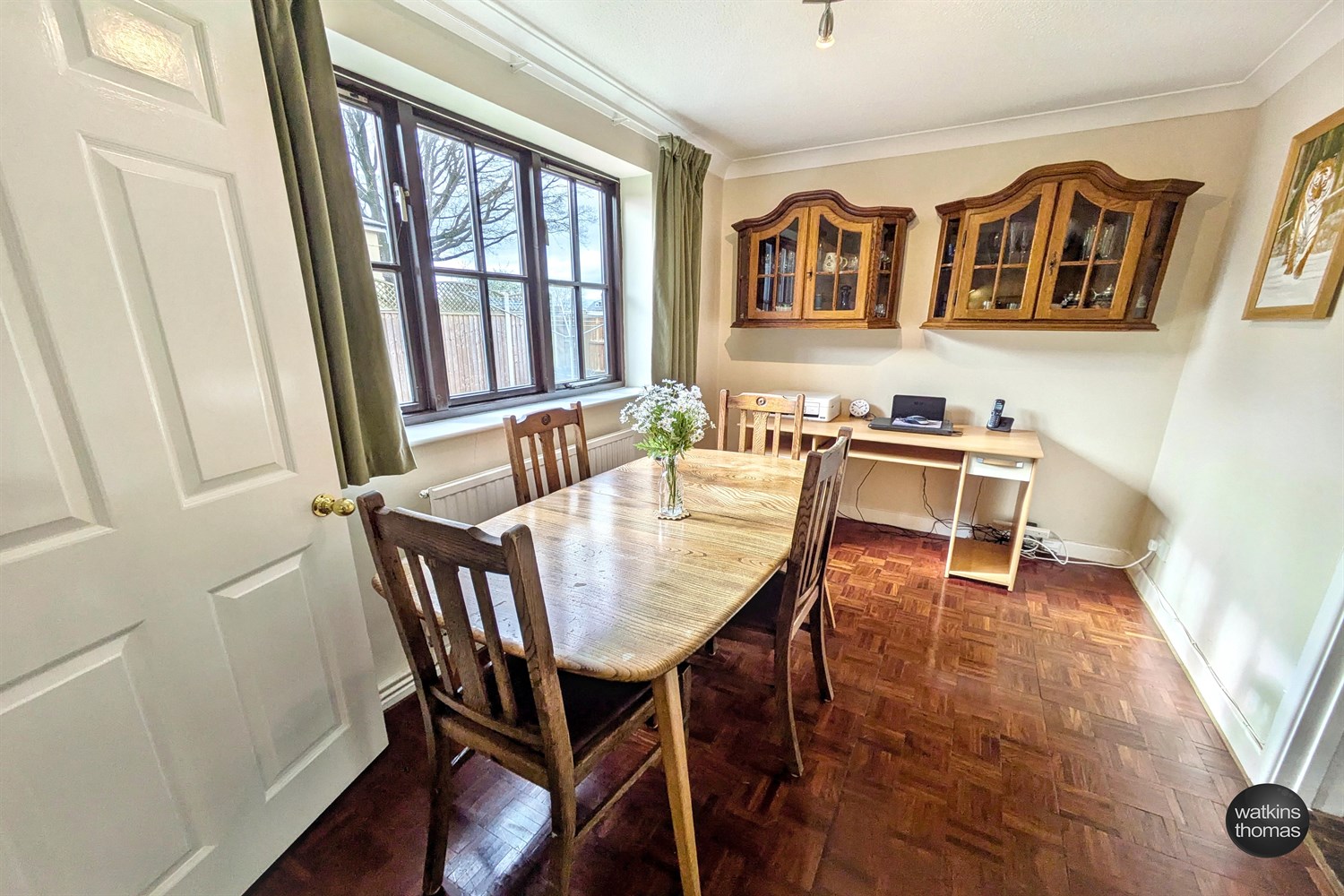 With front aspect double glazed window, panelled radiator, coved ceiling, smoke alarm, stairs to the first flooring, parquet flooring and door to the sitting room.