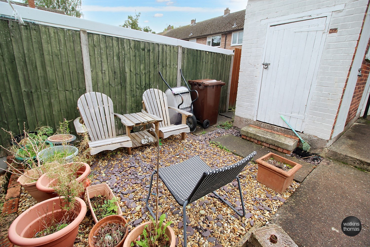 To the front of the property is a hard standing gravelled area giving access to the front door and enclosed by fencing. To the immediate rear of the property is a patio leading to the main garden which is laid to lawn. There is also a gravelled seating area. The property also has the benefit of a brick built storage shed and the garden is enclosed by fencing and walling to provide a degree of privacy. The rear access gate gives access to the permitted parking area.