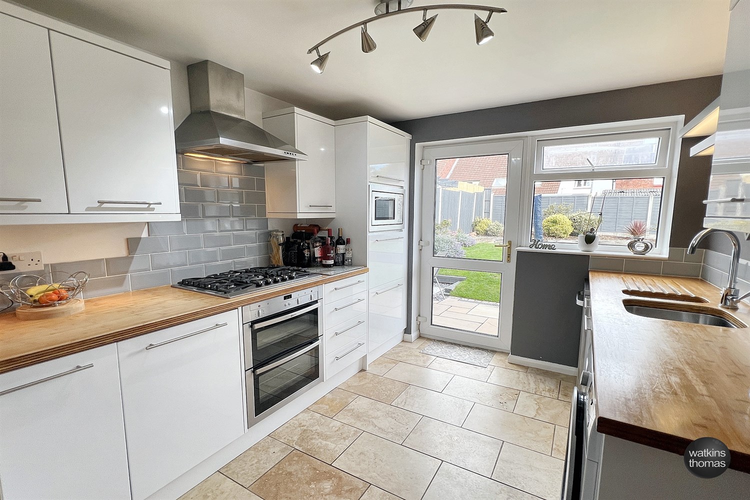 With fitted soft close base cupboards and drawer units with bamboo working surfaces over, tiled surround and eye level cabinets. One and a half bowl with drainer and mixer tap, recess with plumbing for washing machine, recess for dishwasher, recess for upright fridge/freezer, microwave housing and built in double oven with five ring gas hob over and cooker hood above. Double glazed door to rear, double glazed window to rear and tiled floor.