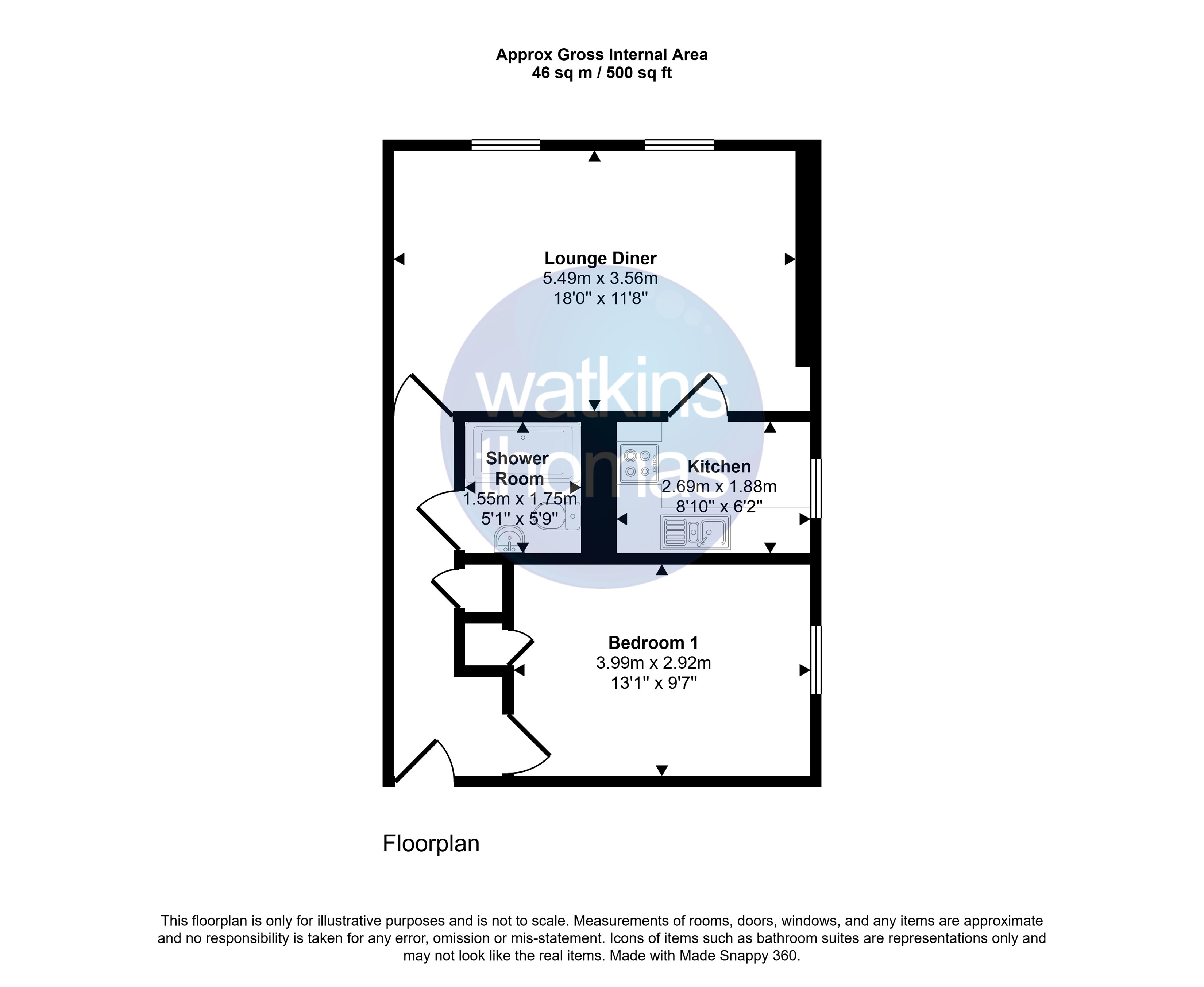Shower Room 1.75m (5'9) x 1.55m (5'1)
