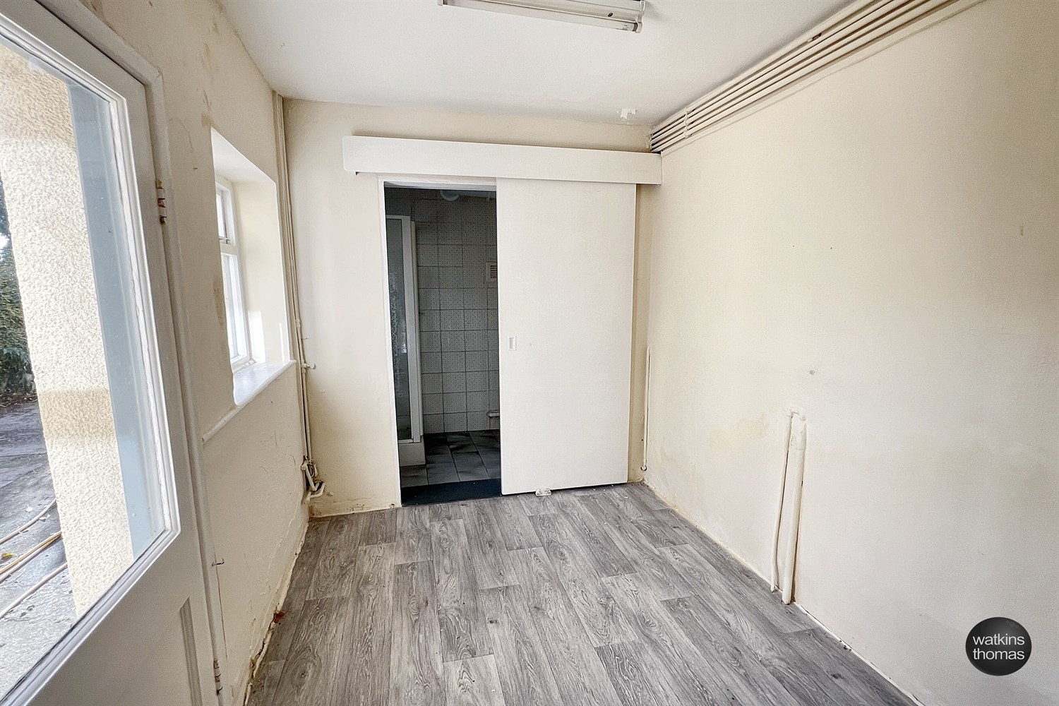 With a single glazed door and window to yard and a sliding door to:
