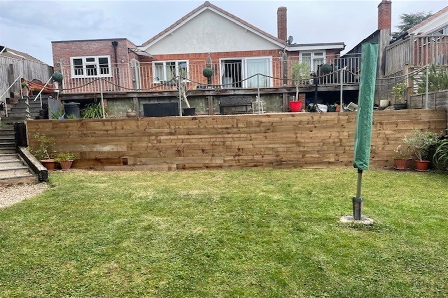 A block pavior pathway leads to the front door. At the rear of the property there is an raised deck (43'5 x 8'9 widening to 13'9) which lies across the rear of the residence and provides for an exceptional entertaining area. The deck is bounded by a fence between wooden posts and a flight of steps then lead down to a middle garden which again is the width of the plot and about 12'3 wide. This area is laid to stone and at the lower level there is a lawn bounded by an evergreen hedge. There is also a steel garden shed and a further garden store.