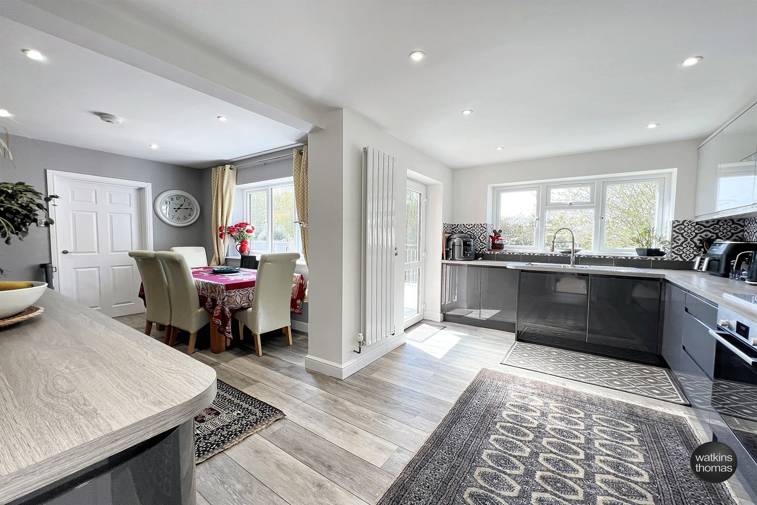 With a double glazed window overlooking the rear garden, sunken ceiling lights, contemporary style radiator and with wood grain effect flooring which continues through a 6' wide opening to the: